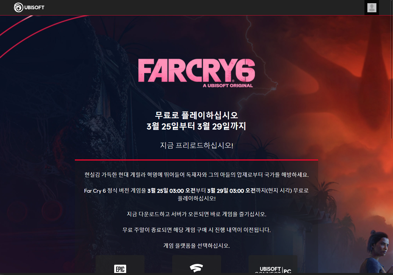 Far Cry 6 파 크라이 6 - Ubisoft 유비소프트 금주 무료 플레이 Play for Free weekend on UbiConnect Uplay, epic games, 에픽 게임즈