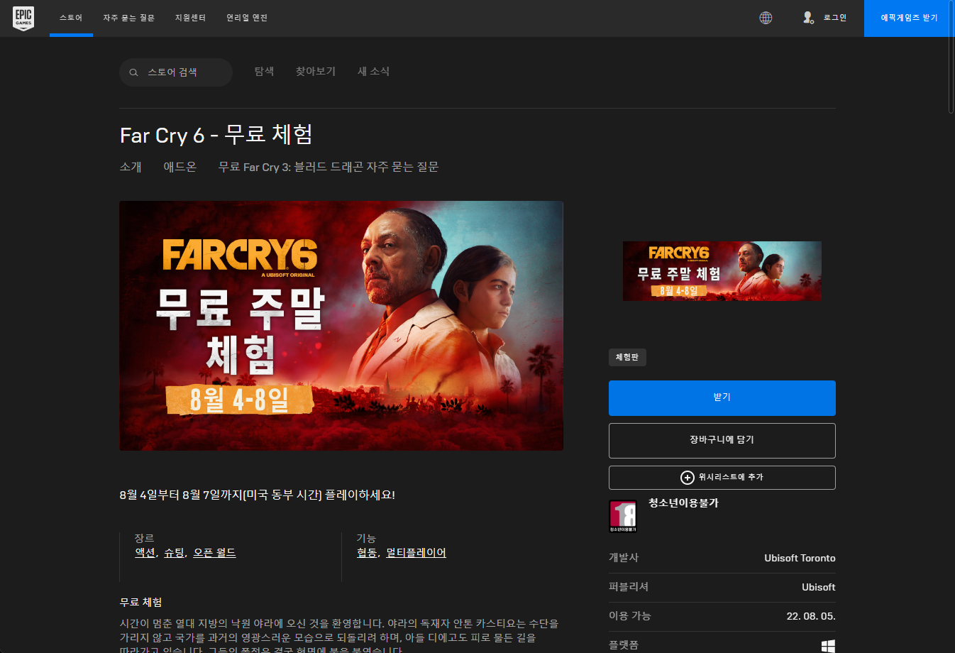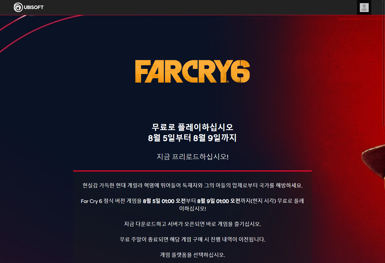 Far Cry 6 파 크라이 6 - Ubisoft 유비소프트 금주 무료 플레이 Play for Free weekend on UbiConnect Uplay, epic games, 에픽 게임즈