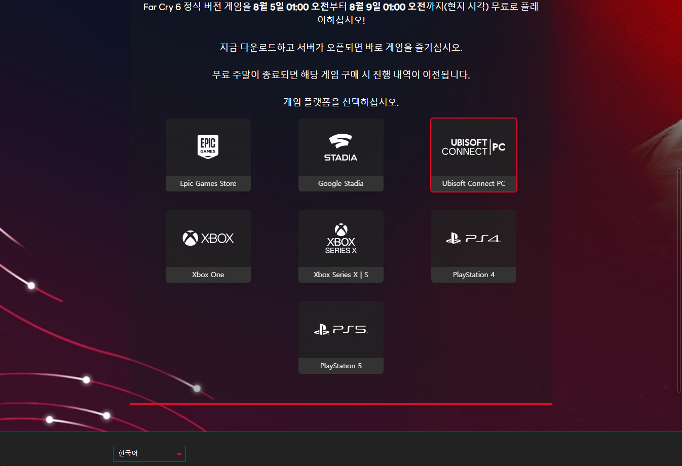 "Far Cry 6" 게임페이지를 조금 내려서 [UBISOFT CONNECT | PC] 버튼을 클릭하면 됩니다.