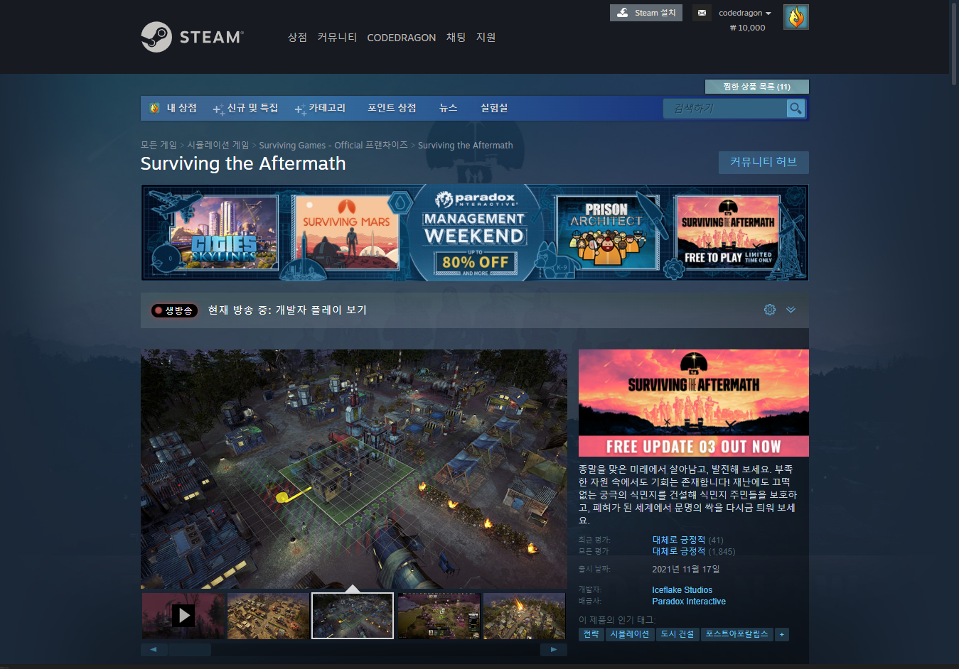 Surviving the Aftermath 서바이빙 더 애프터매스 - Steam 스팀 금주 무료 플레이 Play for Free weekend on Steam