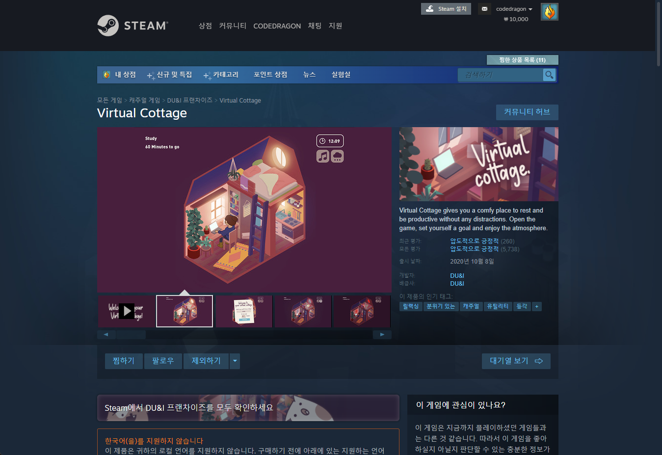 "Virtual Cottage" 페이지를 내려 [게임 플레이]를 클릭하면 됩니다.