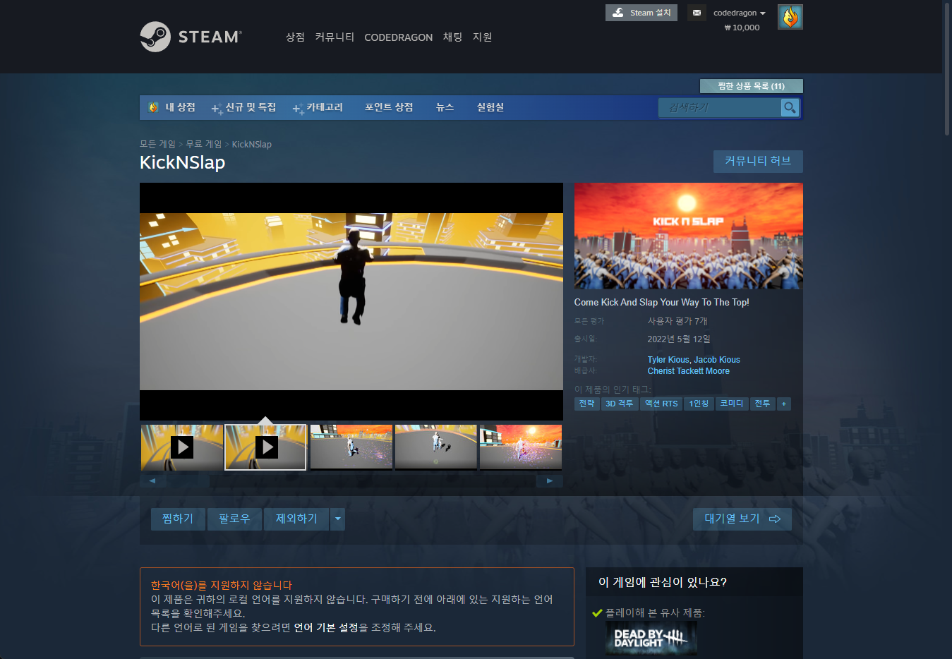 "KickNSlap" 스팀 페이지 입니다.
