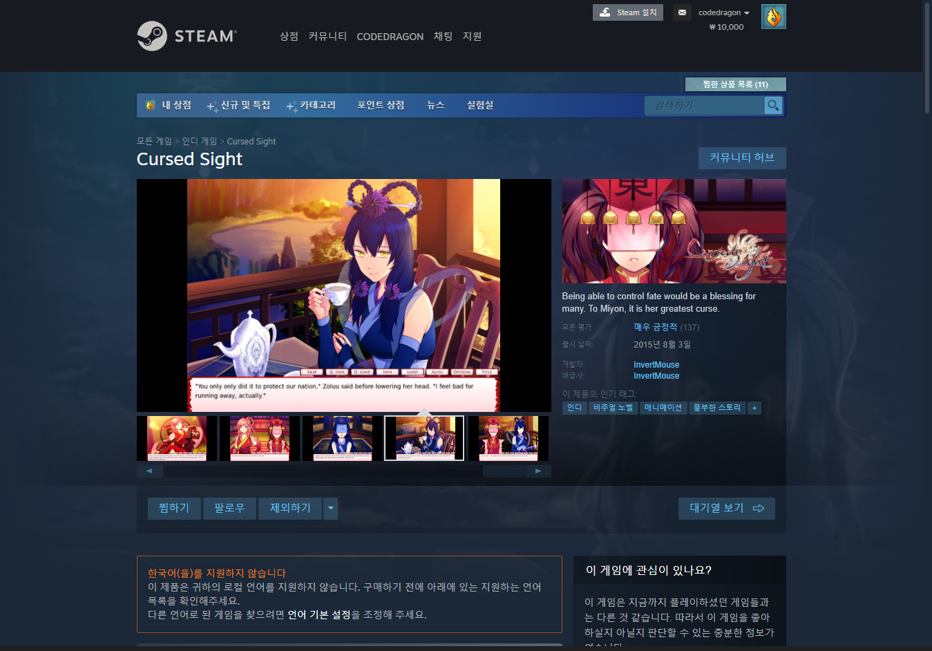 - "Cursed Sight" 게임 보유 확인 & 설치파일 다운로드