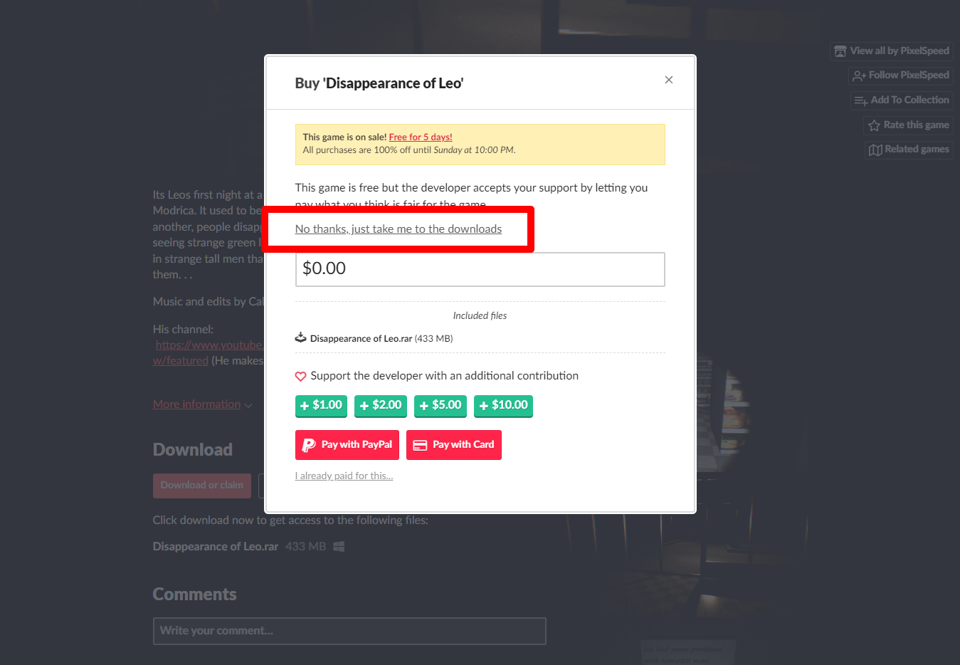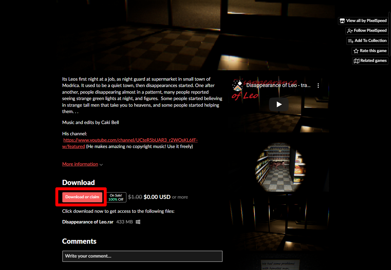 "Disappearance of Leo" 페이지를 조금 내려서 [Download or claim]을 클릭합니다.