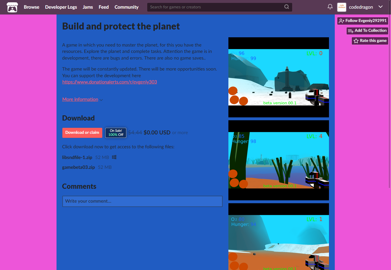 ₩5,416 -> ₩0(Free) Build and protect the planet 빌드 앤 프로텍트 더 플래닛 무료로 받기 영구소장 - itch.io 잇치 닷 아이오 한시적 무료 소장하기