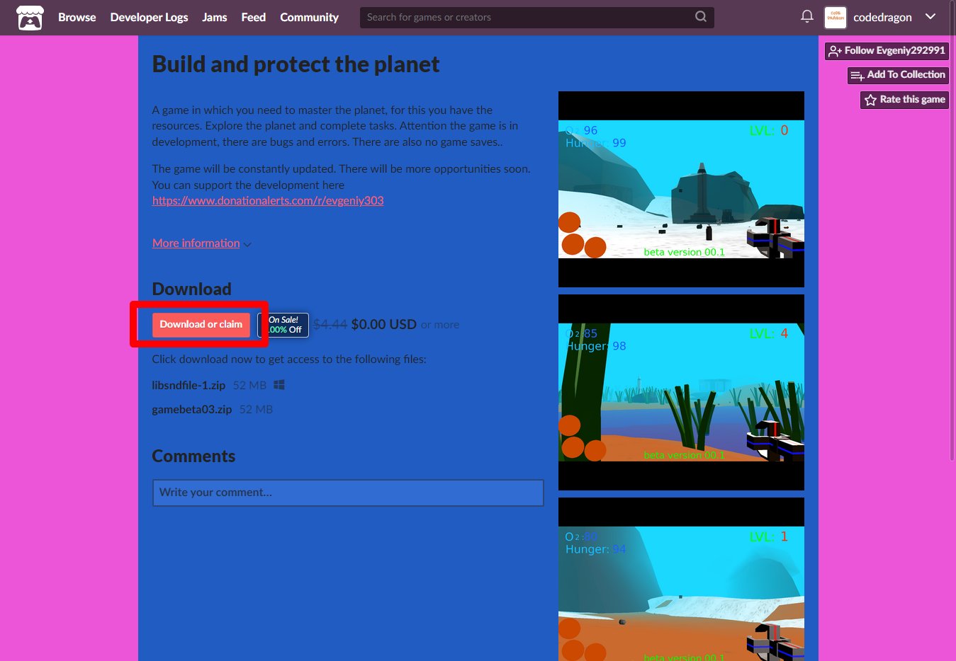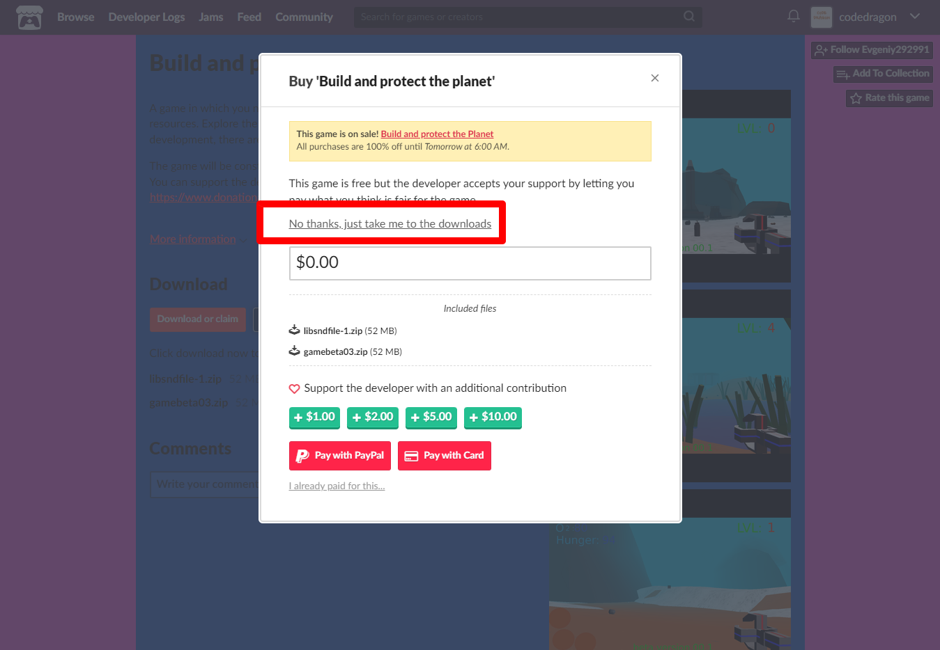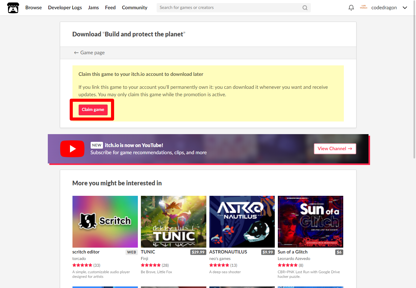 "Build and protect the planet" 페이지에 있는 [Download or claim]을 클릭합니다.