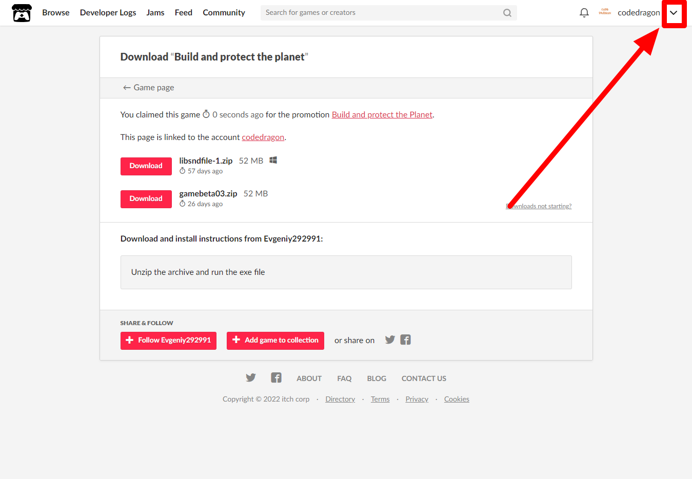 itch.io에서 받은 게임 확인해 설치파일 다운받아 보겠습니다.