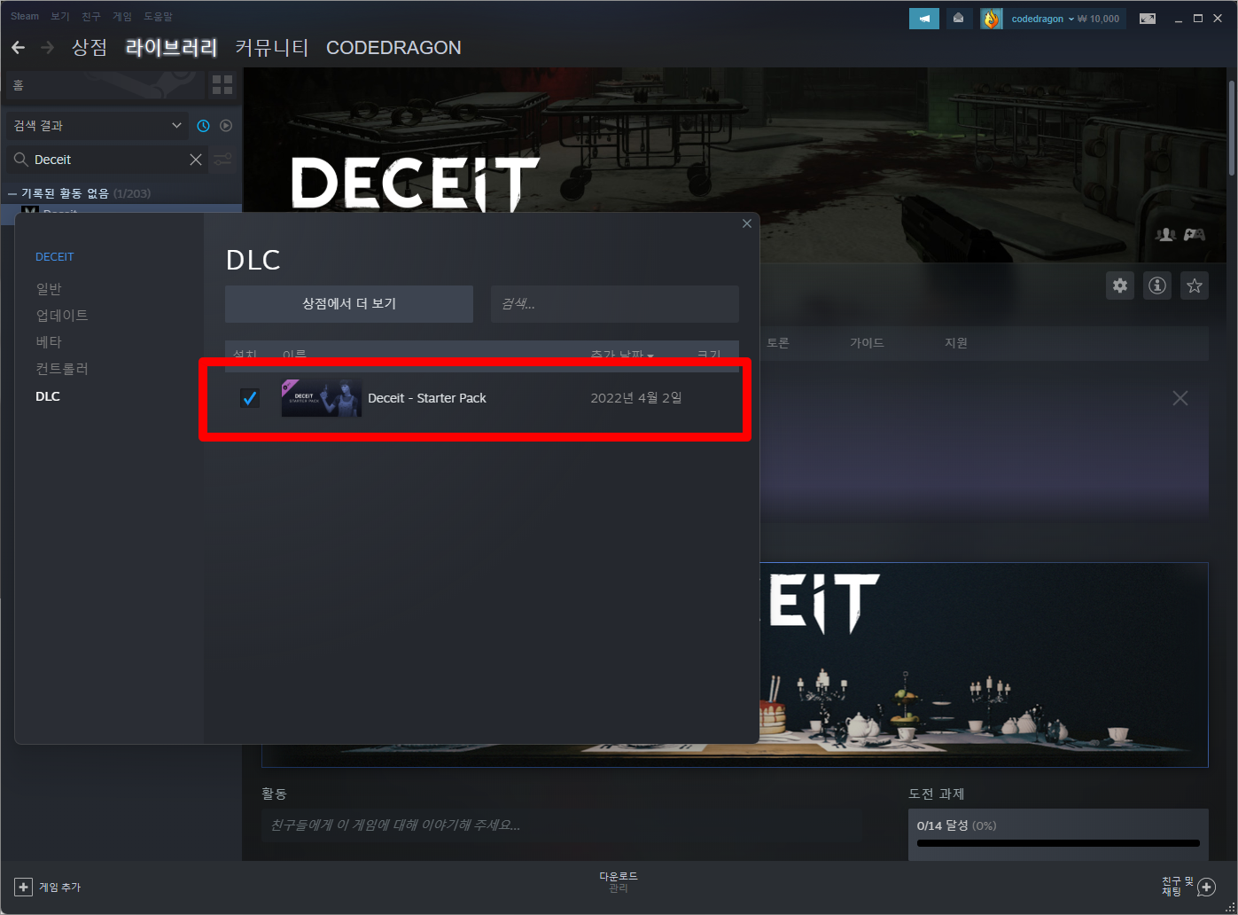 "Deceit - Starter Pack" 게임 라이브러리 확인