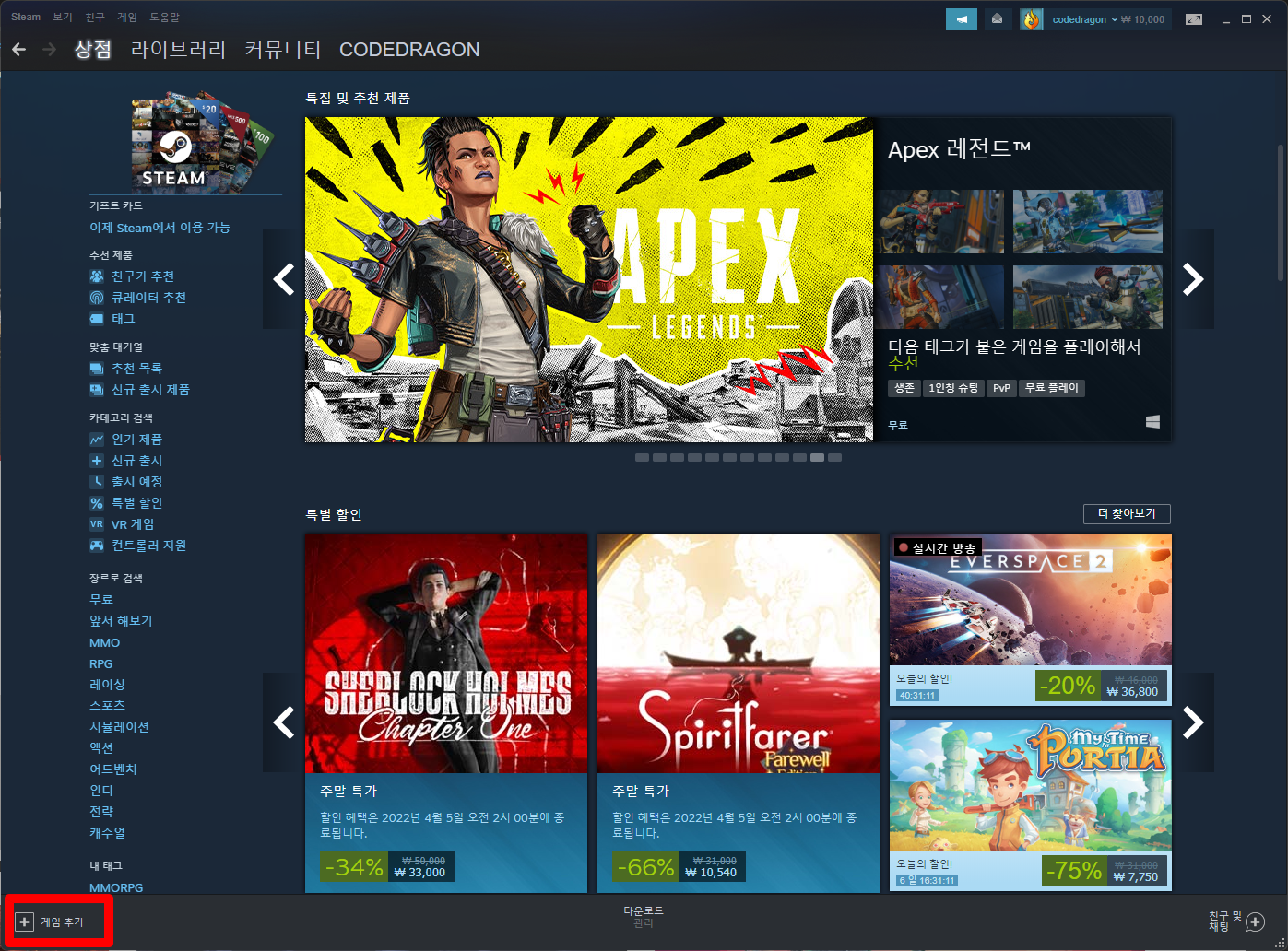 좌측하단의 [+ 게임추가] 클릭합니다.