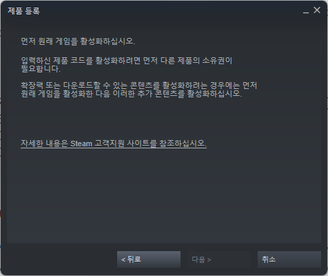 나오는 메뉴에서 [Steam에 제품 등록]을 클릭합니다.