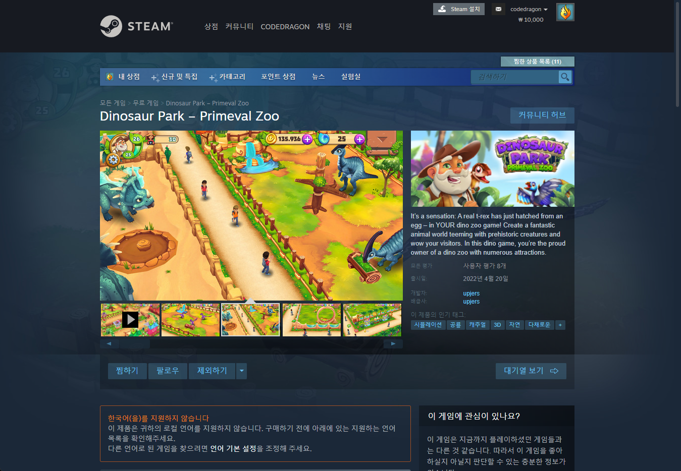- "Dinosaur Park – Primeval Zoo" 게임 보유 확인