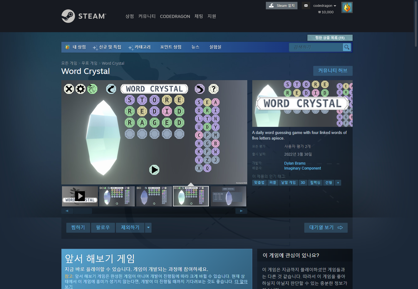 "Word Crystal" 스팀 페이지 입니다.