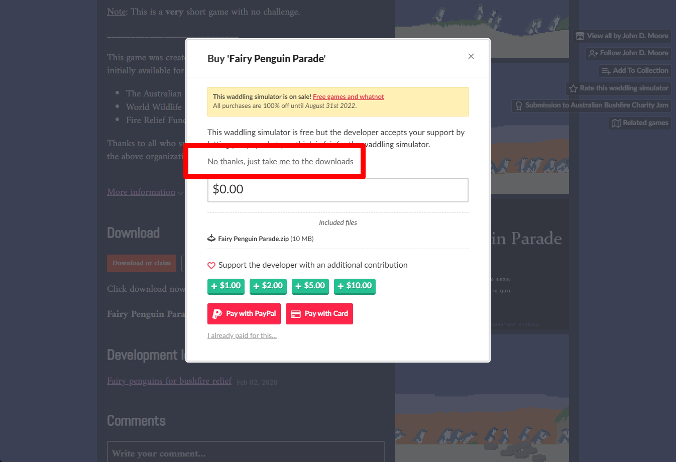 "Fairy Penguin Parade" 페이지에 있는 [Download or claim]을 클릭합니다.