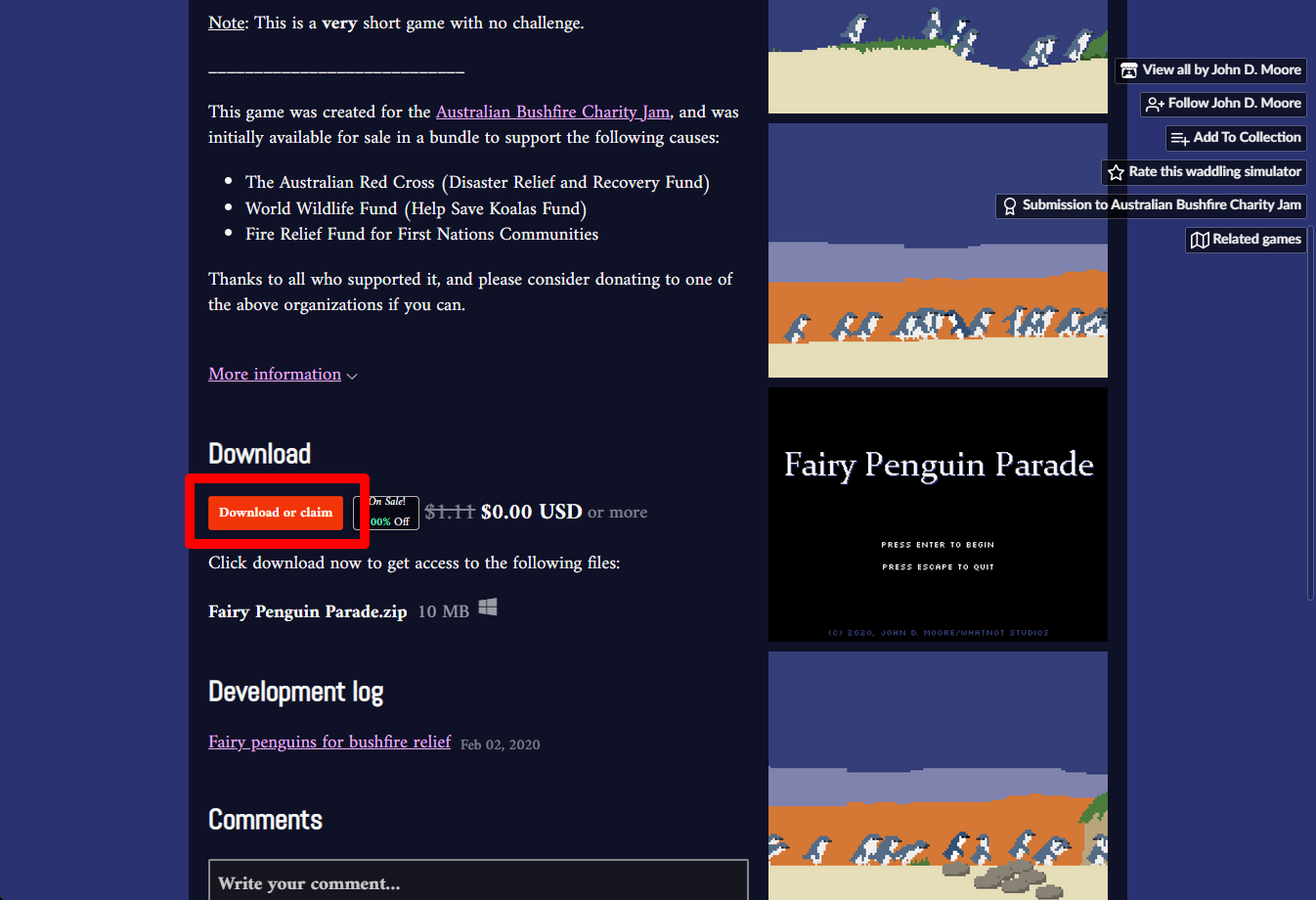 "Fairy Penguin Parade" 페이지에 있는 [Download or claim]을 클릭합니다.