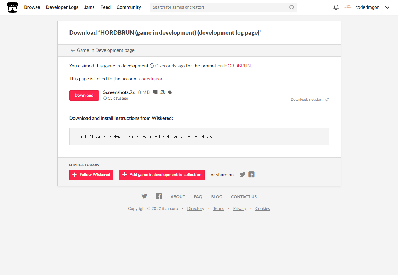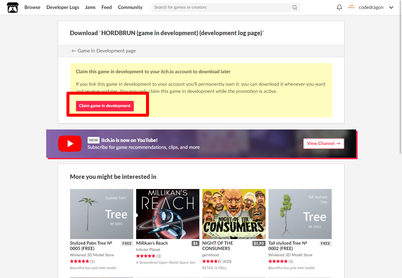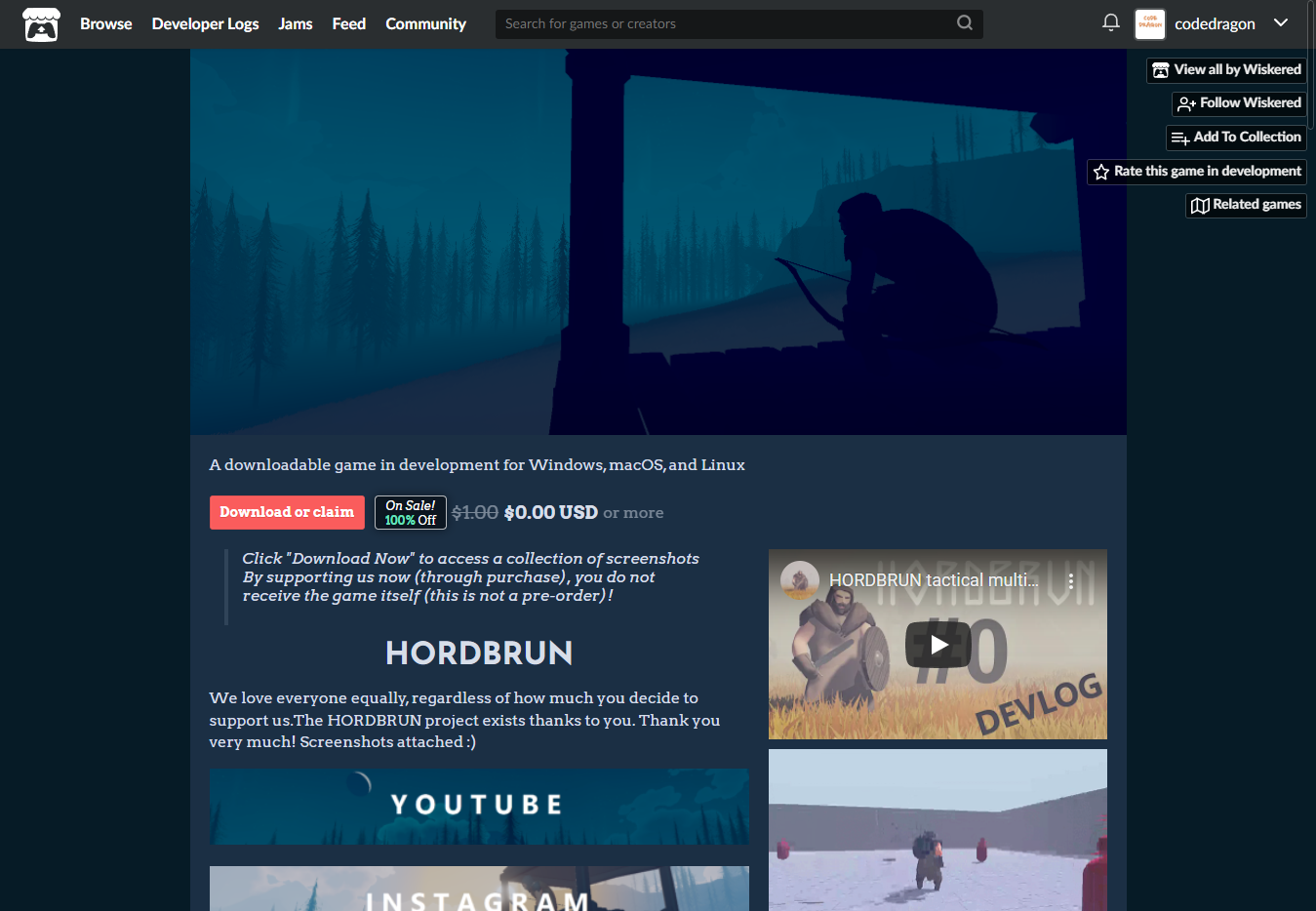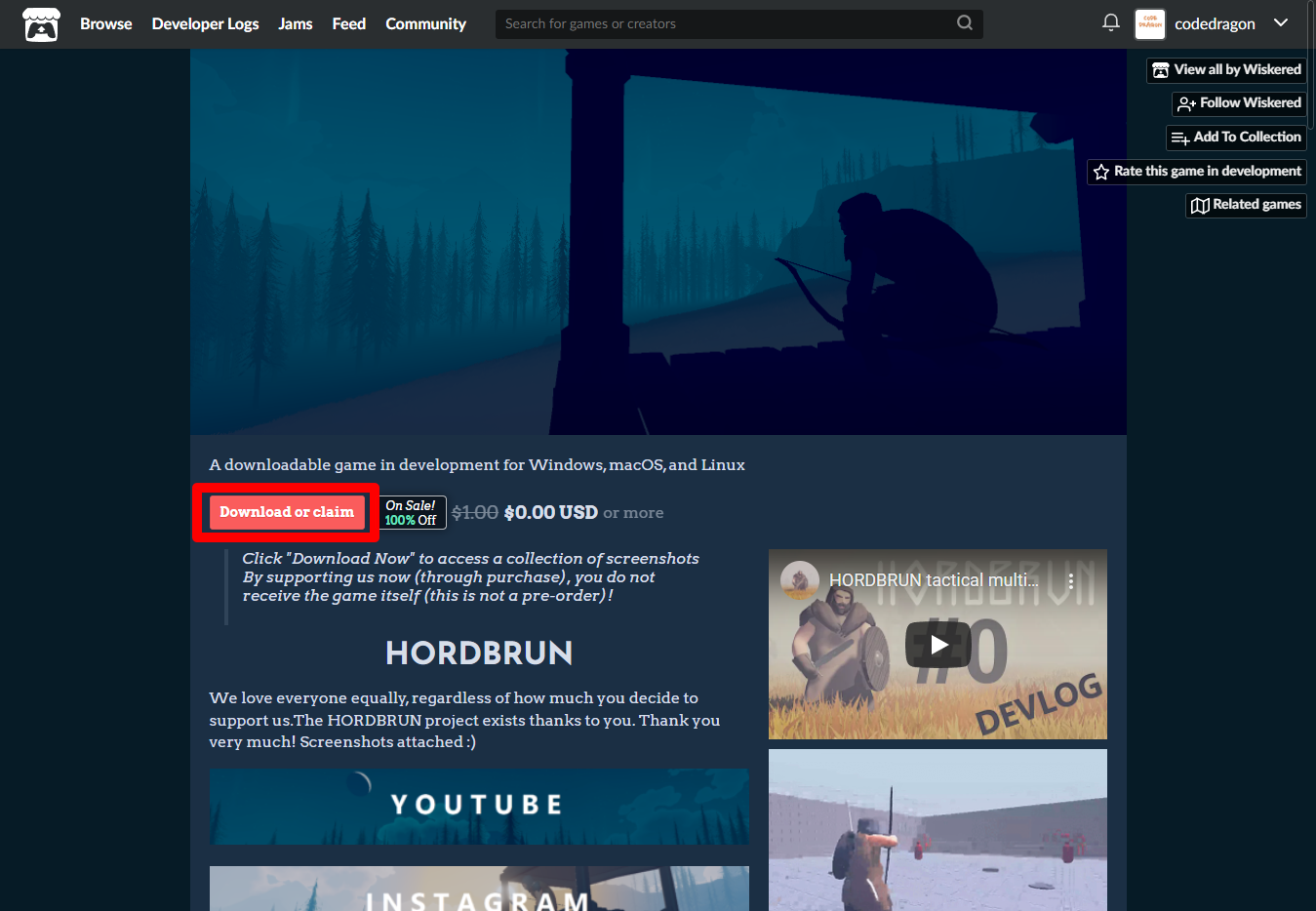 "HORDBRUN" 페이지에 있는 [Download or claim]을 클릭합니다.