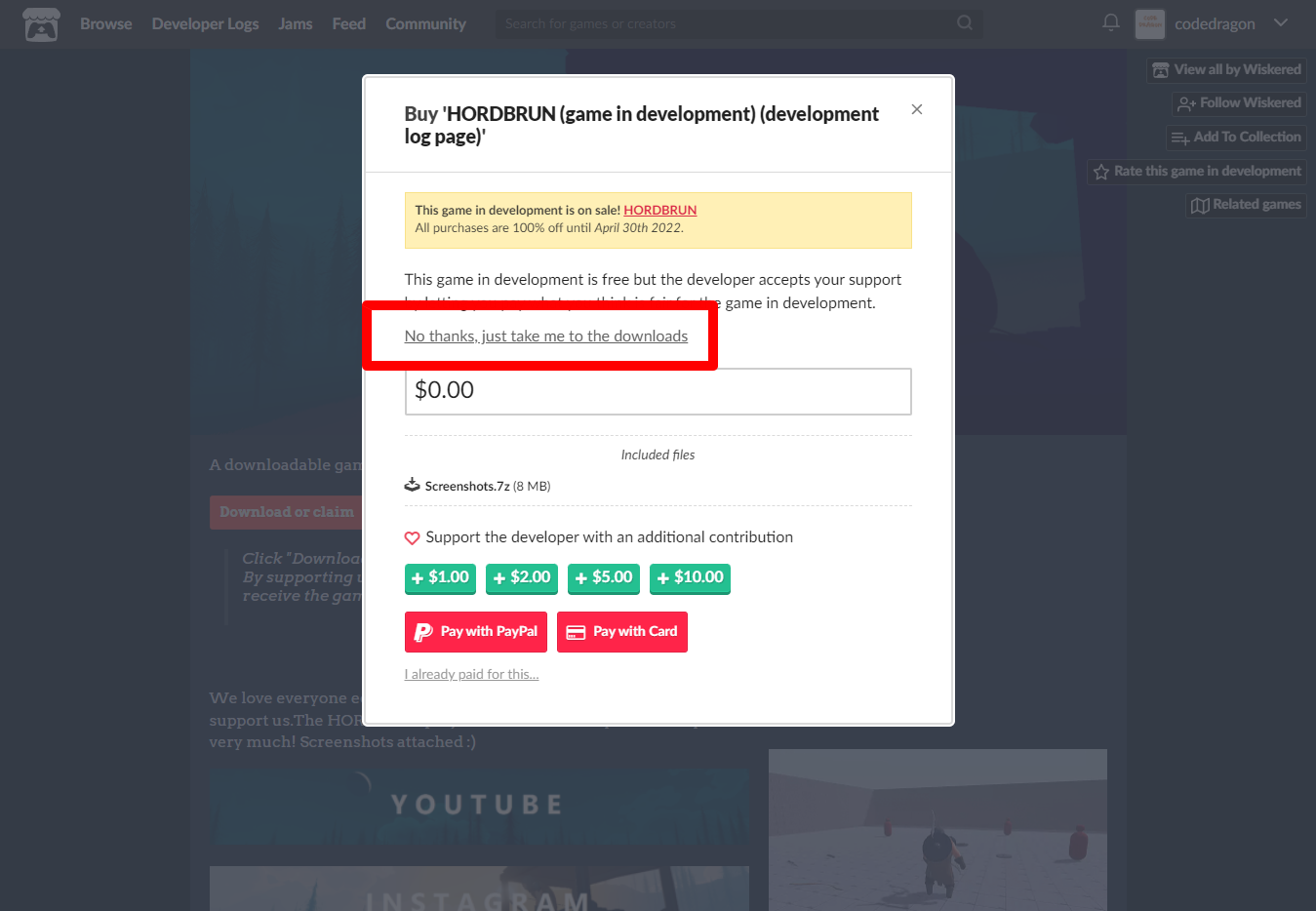 "HORDBRUN" 페이지에 있는 [Download or claim]을 클릭합니다.