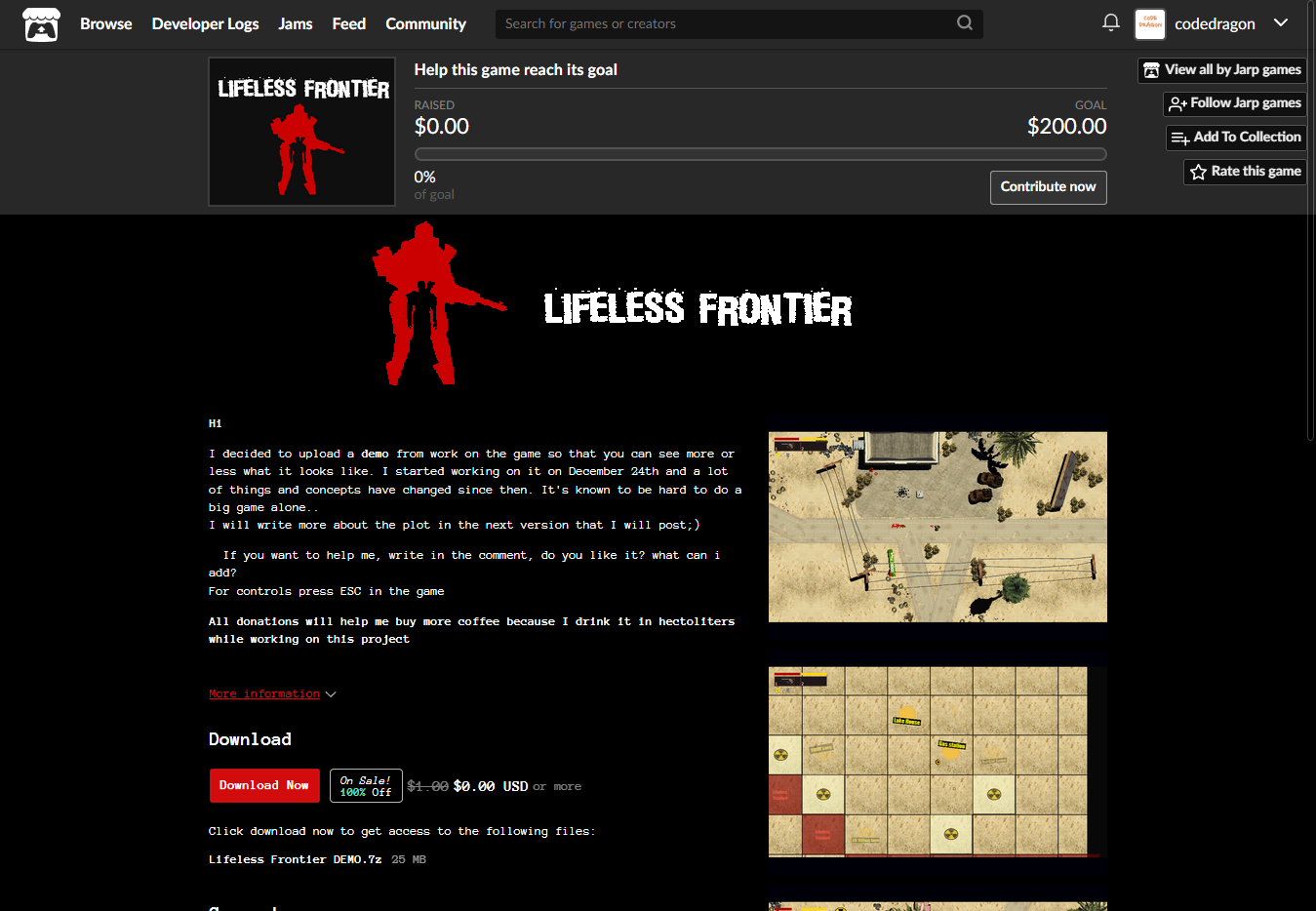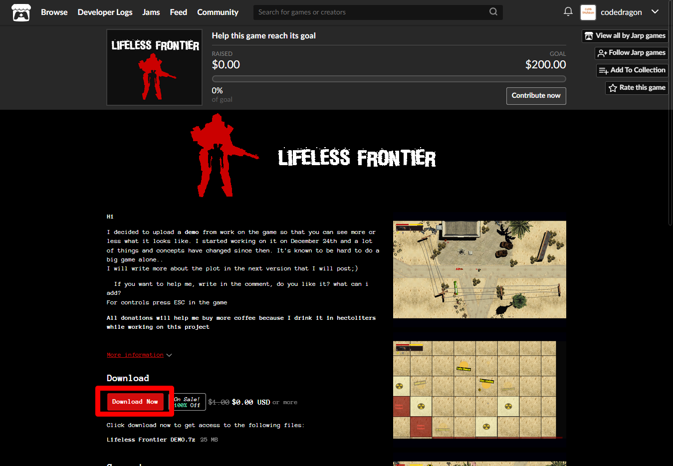 "Lifeless Frontier" 해당 항목에 있는 [Download] 버튼을 클릭하면 게임의 설치파일을 다운받을 수 있습니다.