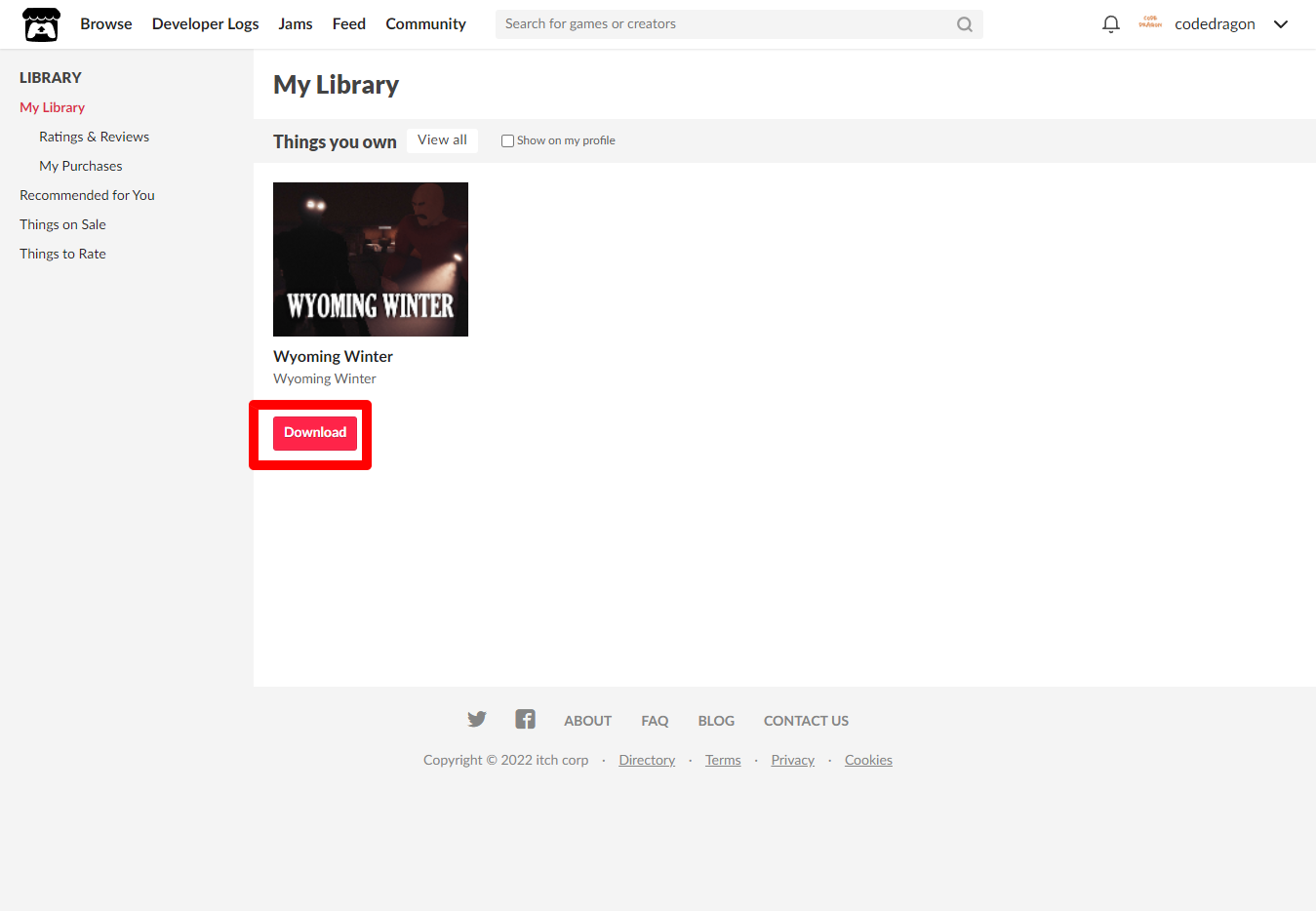 "My Lirary"에서 방금 받은 "Wyoming Winter" 게임 항목을 확인할 수 있습니다.