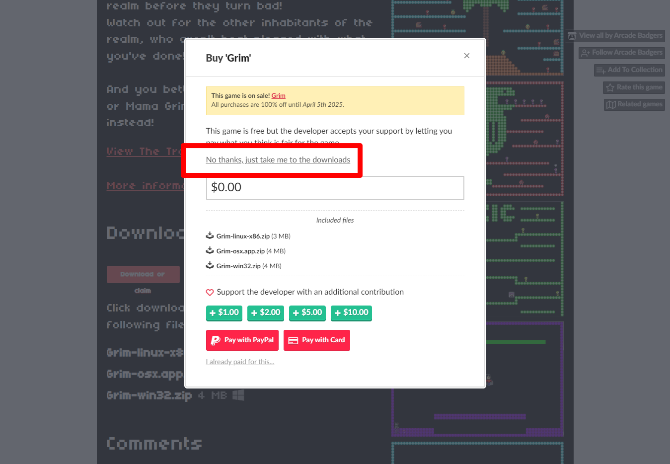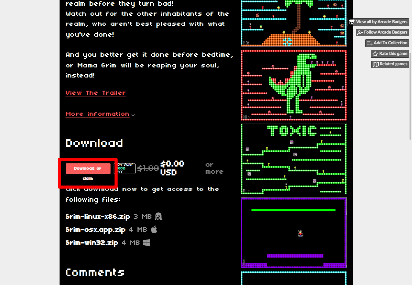 "Grim" 페이지를 내려서 [Download or claim]을 클릭합니다.