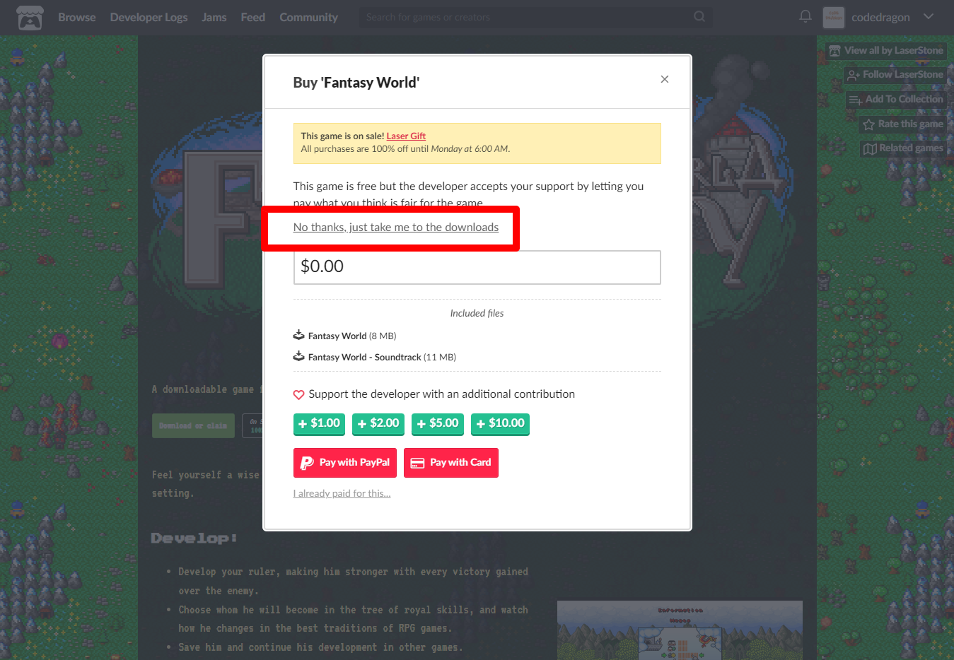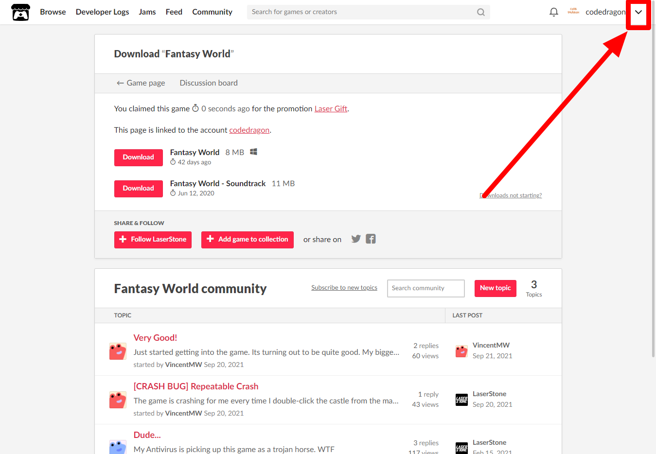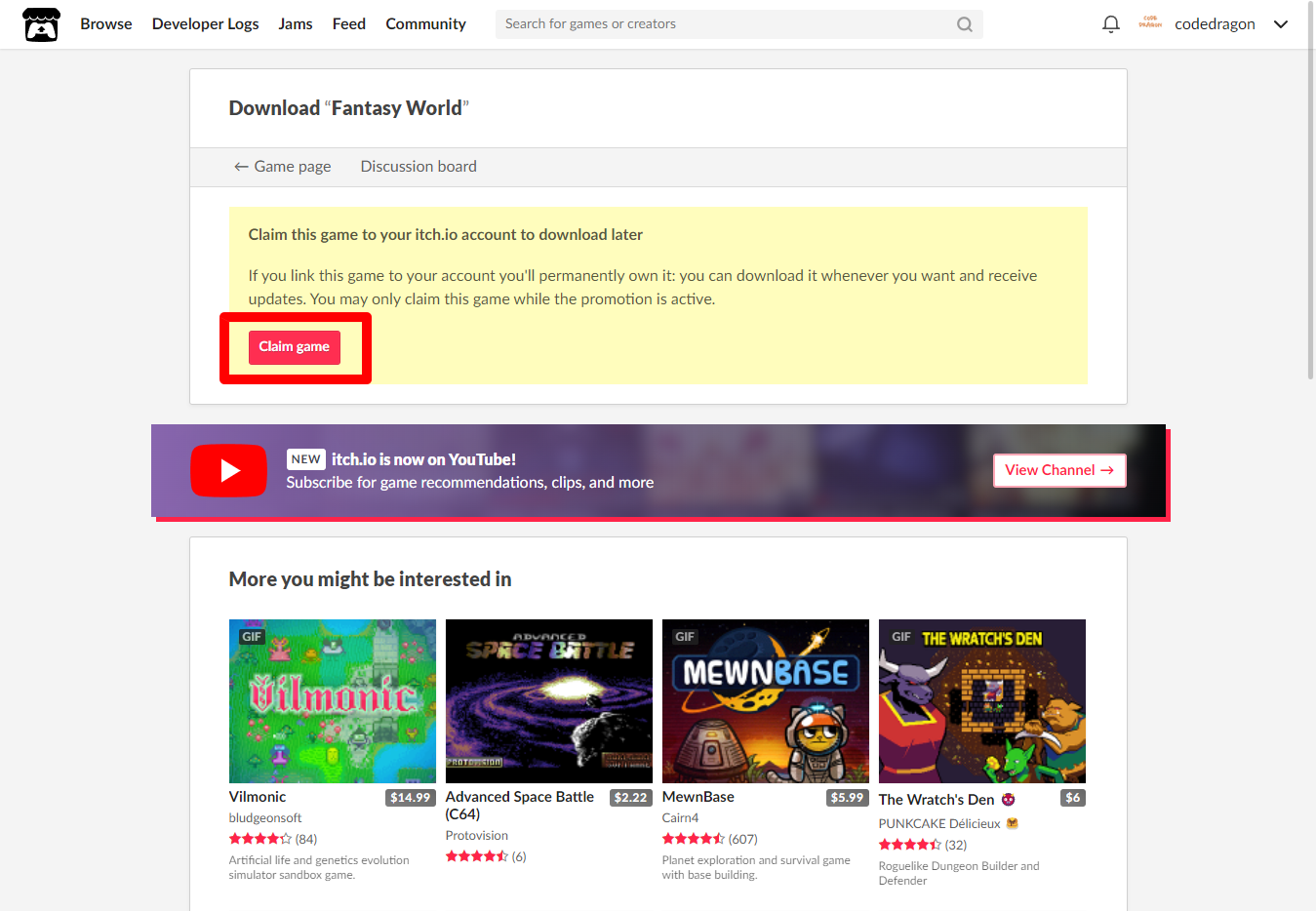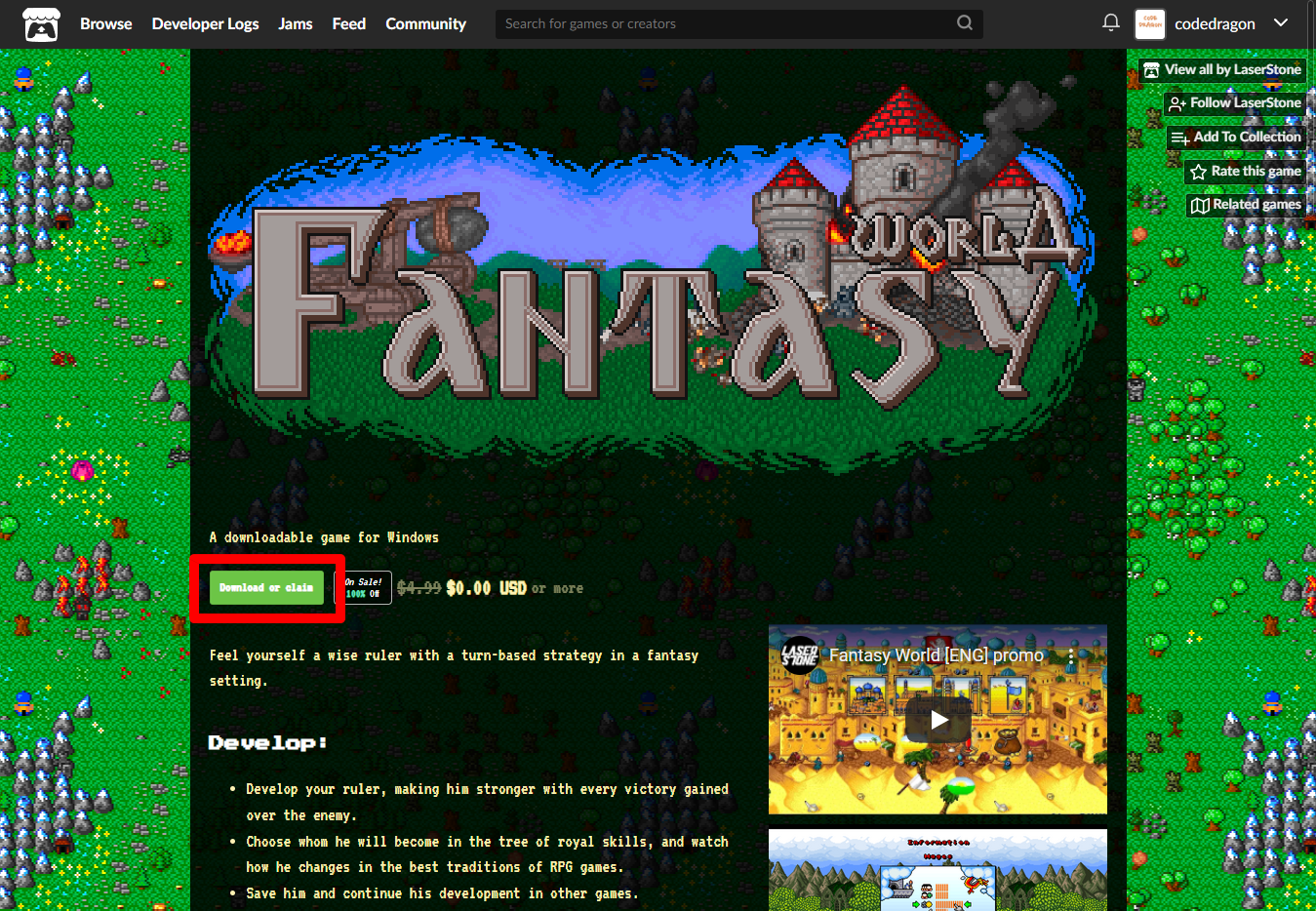 "Fantasy World" 페이지에 있는 [Download or claim]을 클릭합니다.