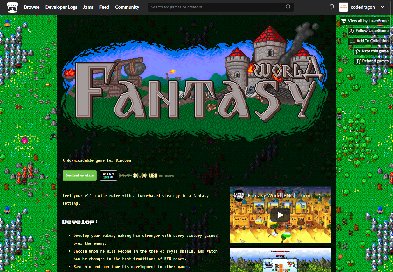 ₩6,061 -> ₩0(Free) Fantasy World 판타지 월드 무료로 받기 영구소장 - itch.io 잇치 닷 아이오 한시적 무료 소장하기