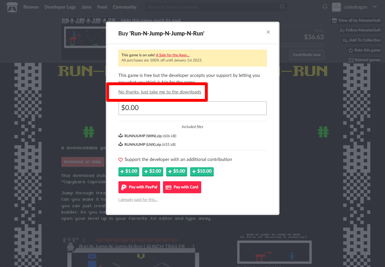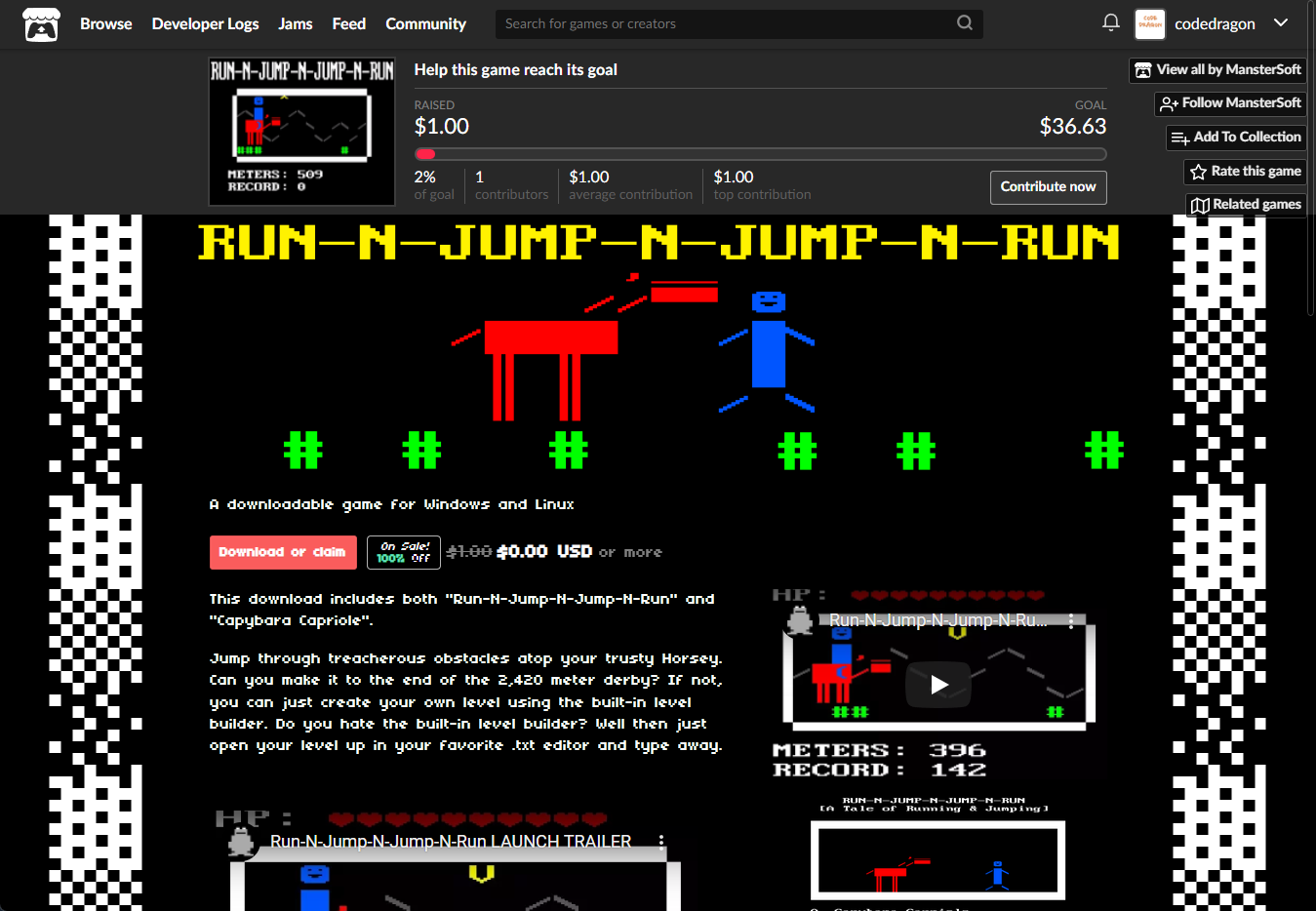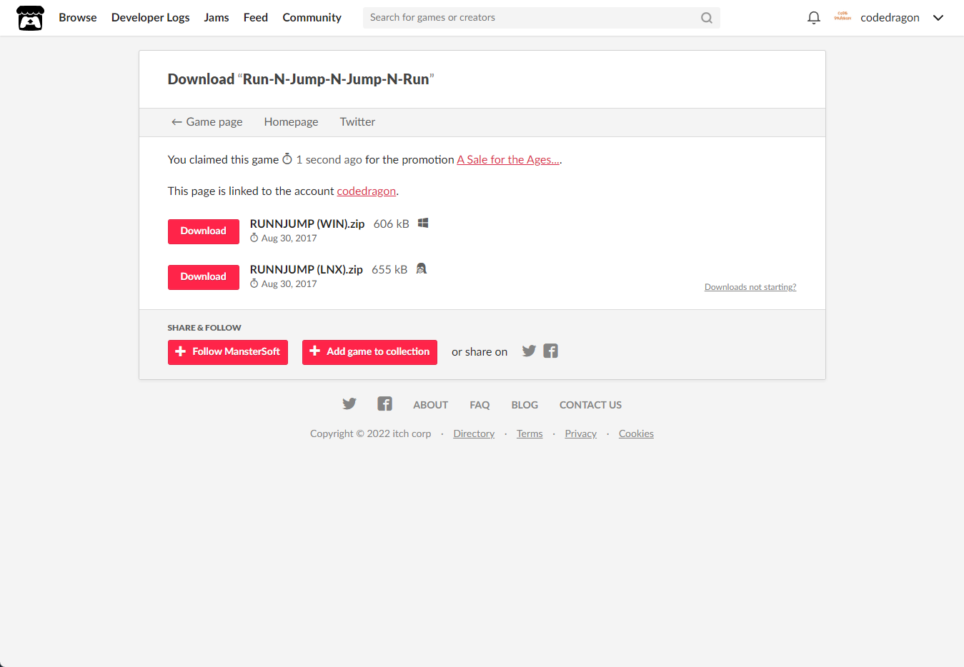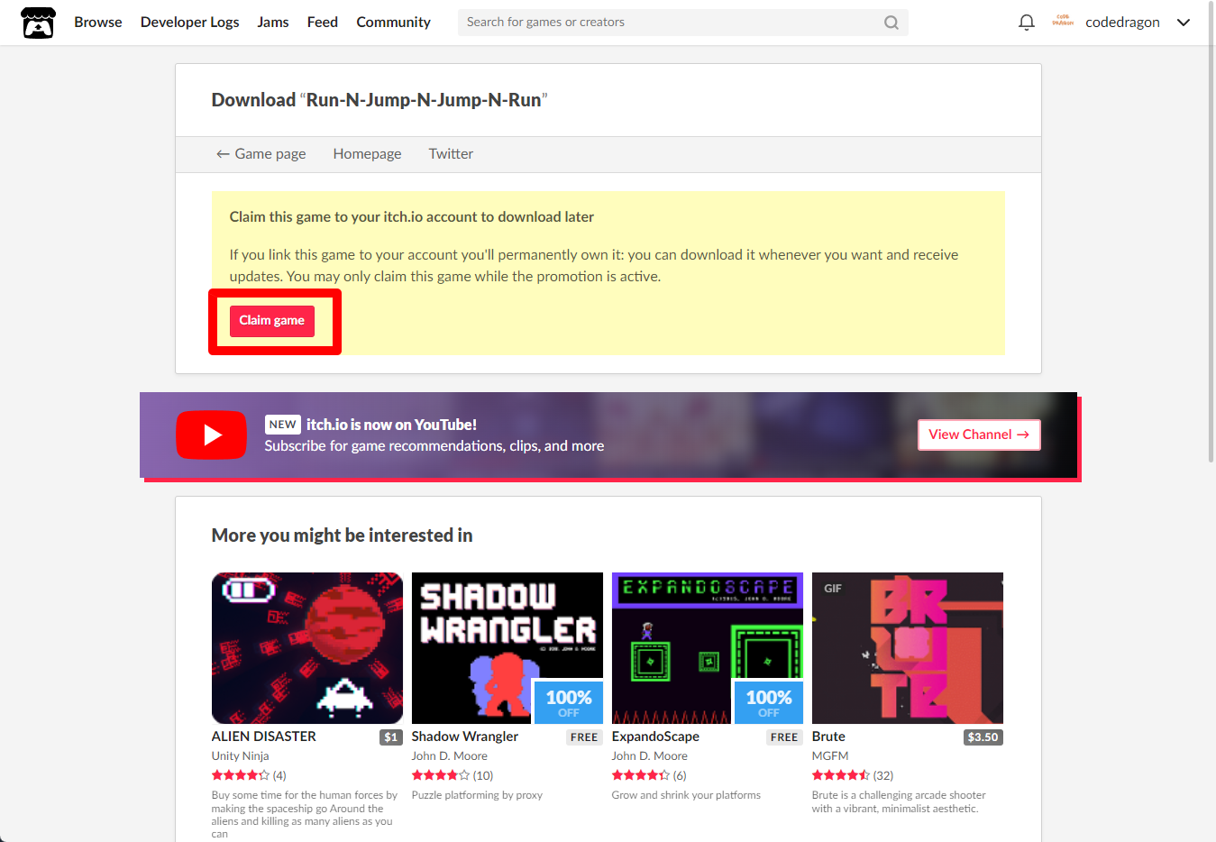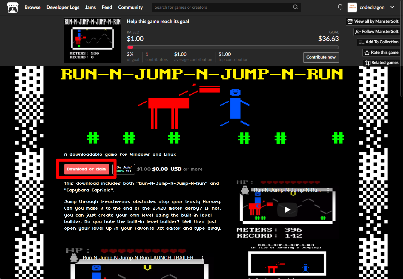 "Run-N-Jump-N-Jump-N-Run" 페이지에 있는 [Download or claim]을 클릭합니다.