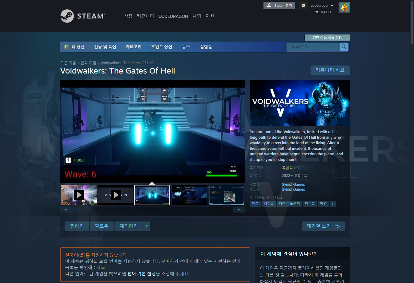 "Voidwalkers: The Gates Of Hell" 스팀 페이지 입니다.