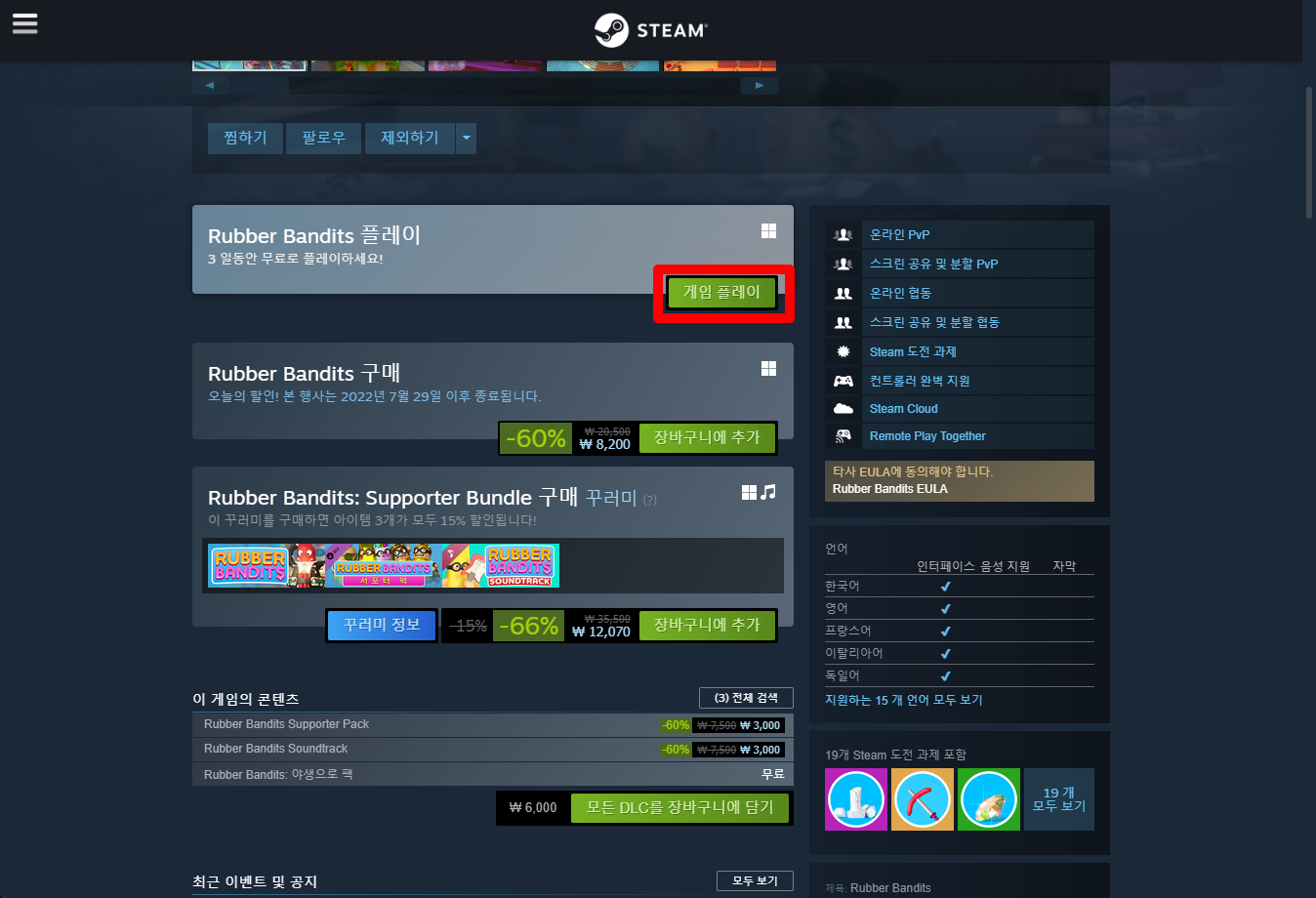 "Rubber Bandits" 게임페이지를 조금 내려서 [게임 플레이] 버튼을 클릭하면 됩니다.