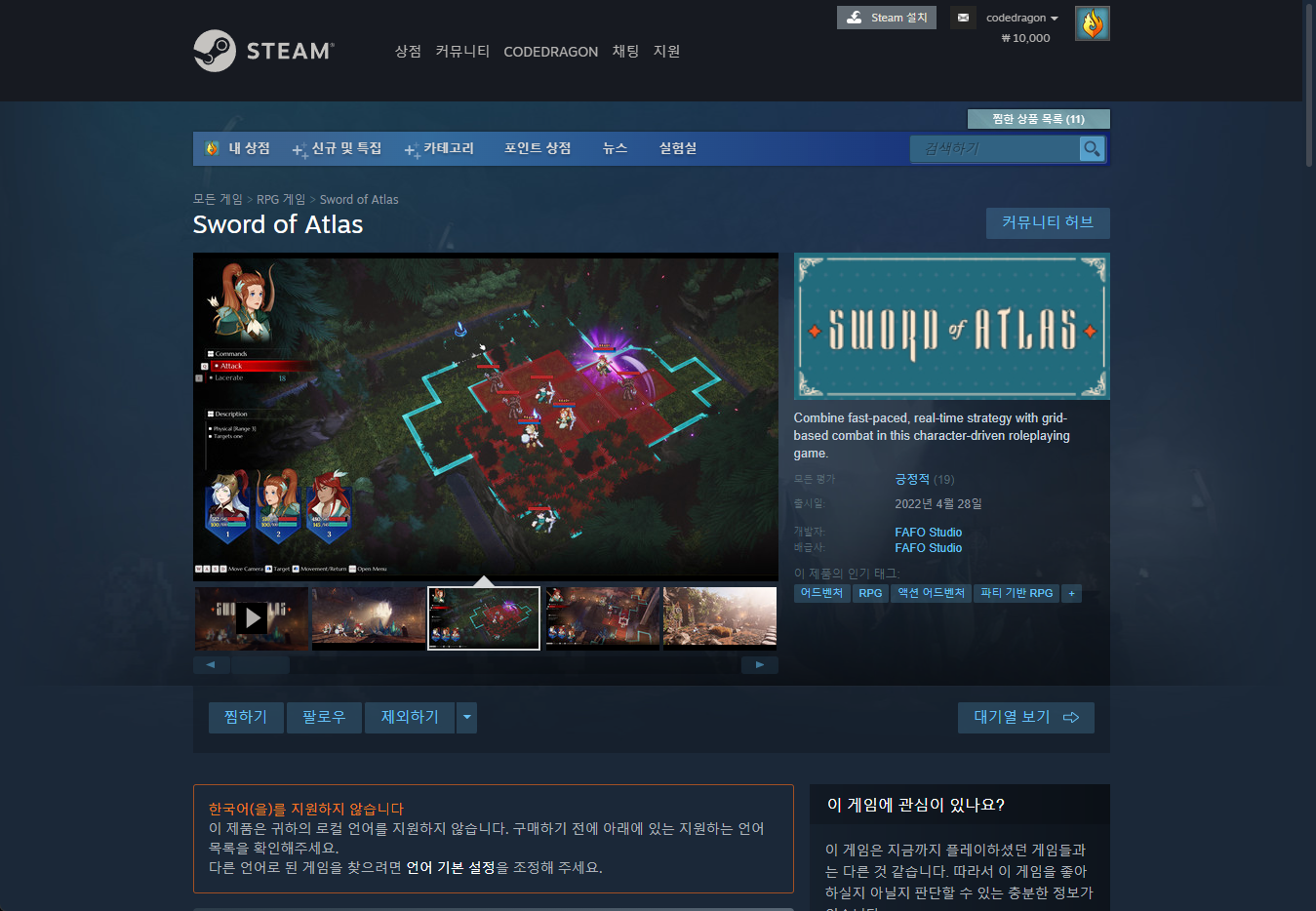 "Sword of Atlas" 스팀 페이지 입니다.