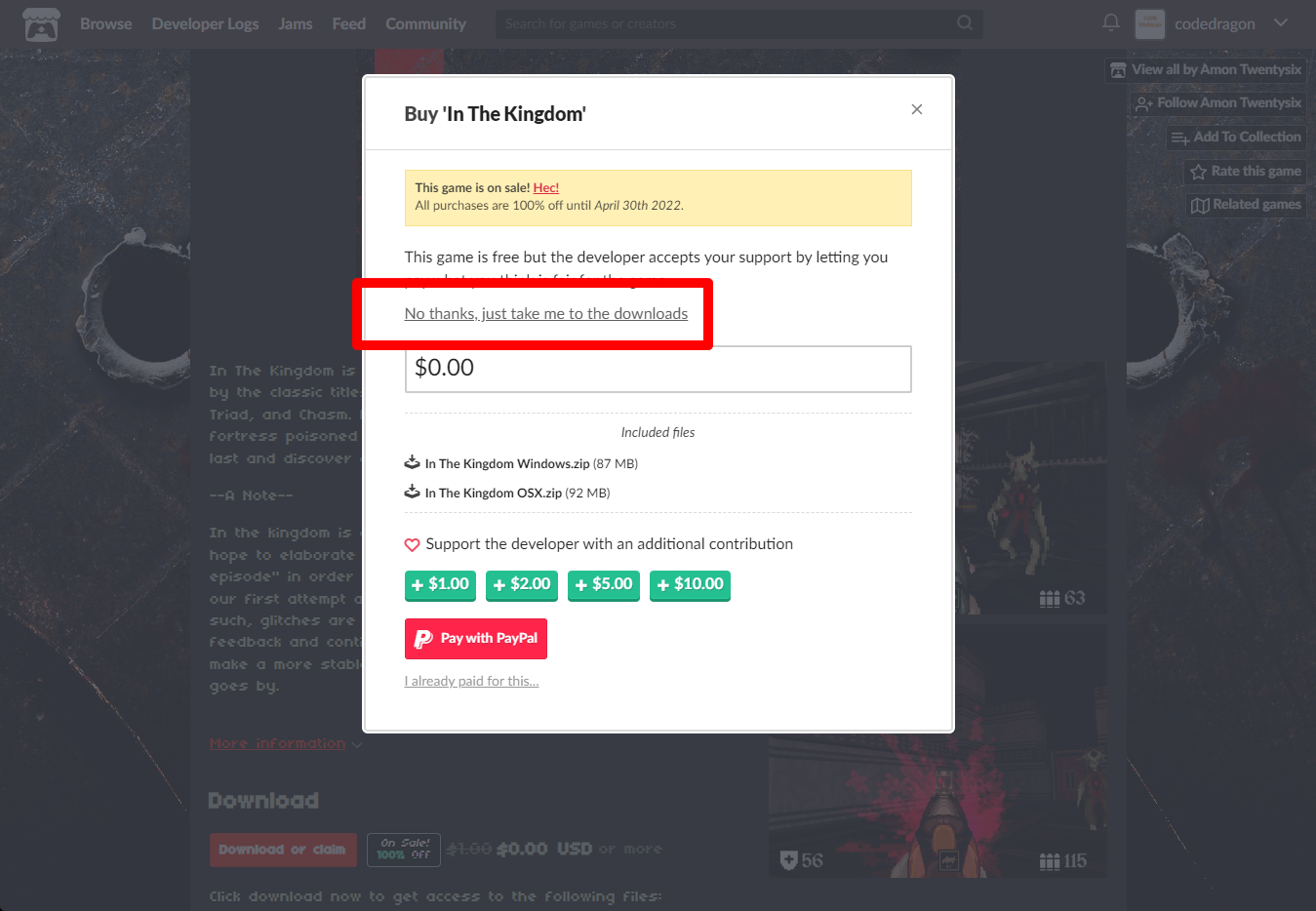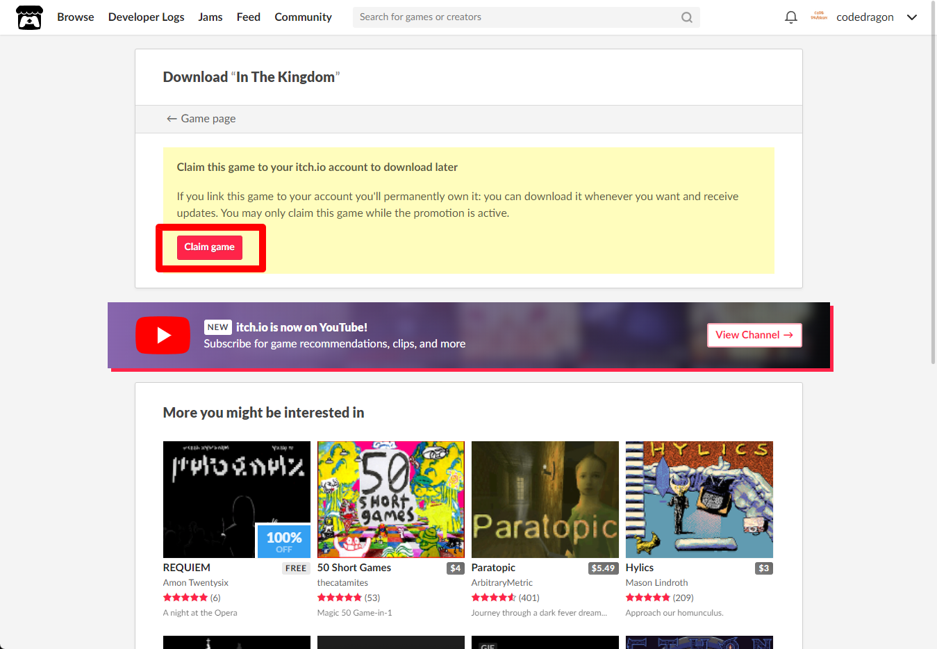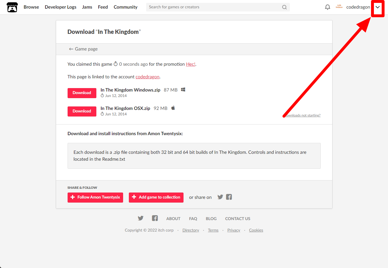 "In The Kingdom" 페이지에 있는 [Download or claim]을 클릭합니다.