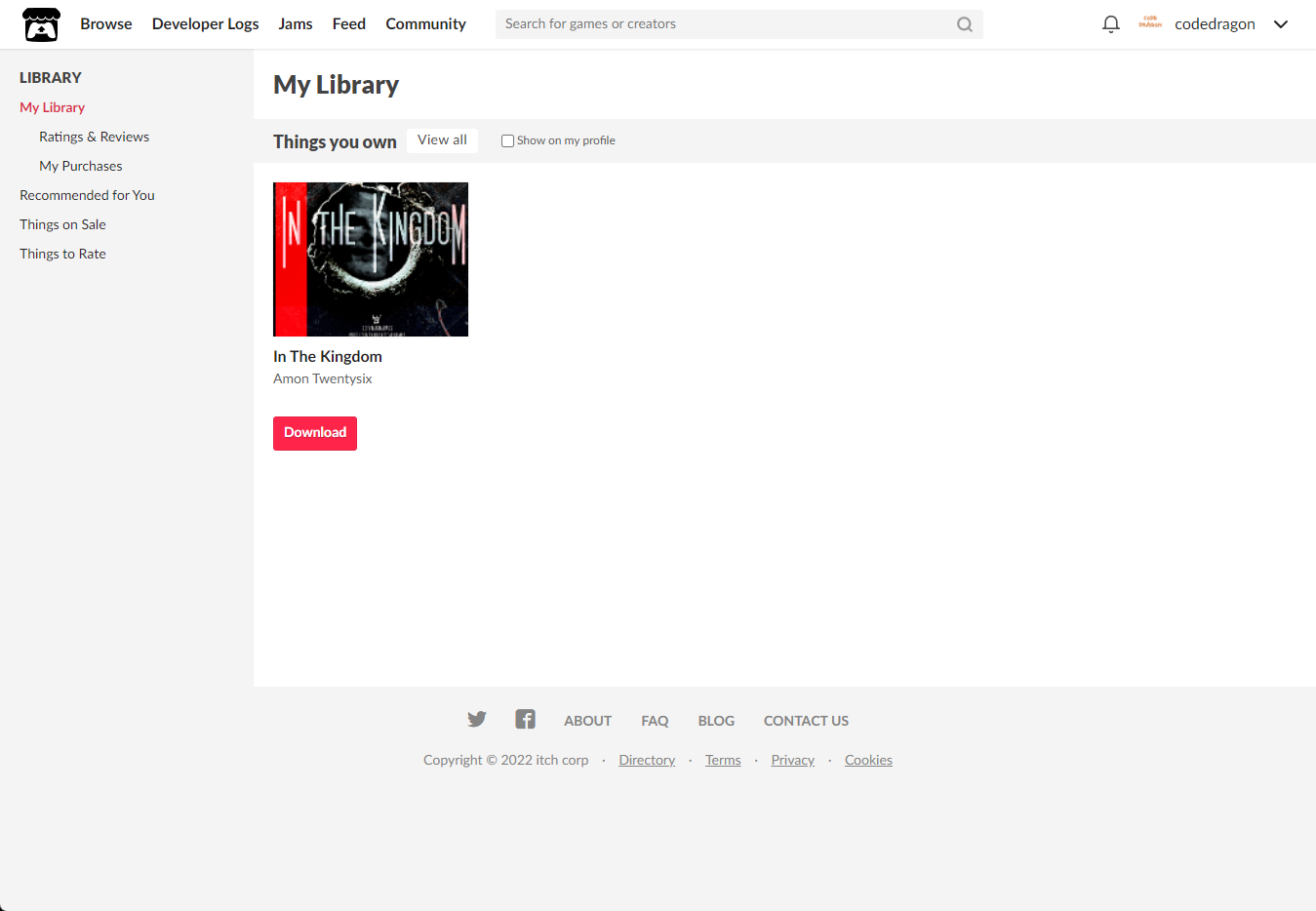 "My Lirary"에서 방금 받은 "In The Kingdom" 게임 항목을 확인할 수 있습니다.