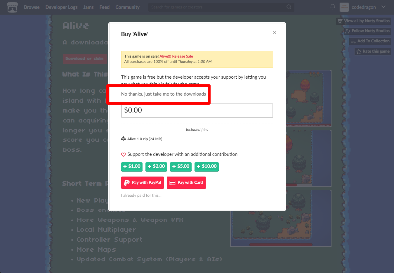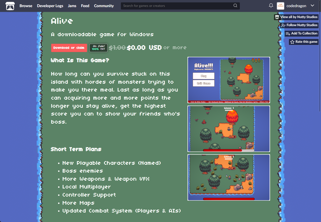 ₩1,229 -> ₩0(Free) Alive 어라이브 무료로 받기 영구소장 - itch.io 잇치 닷 아이오 한시적 무료 소장하기