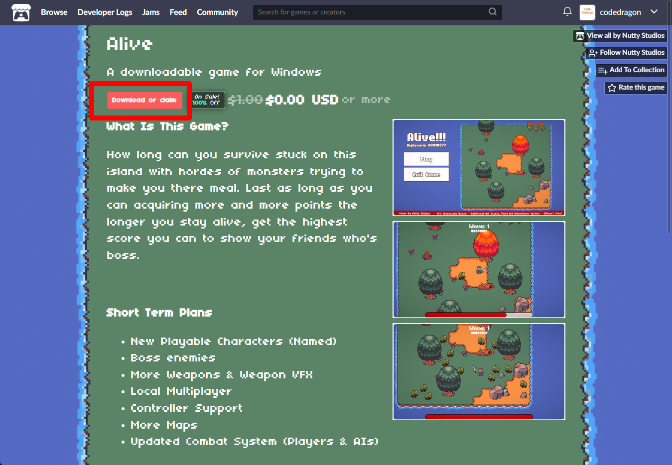 "Alive" 페이지에 있는 [Download or claim]을 클릭합니다.