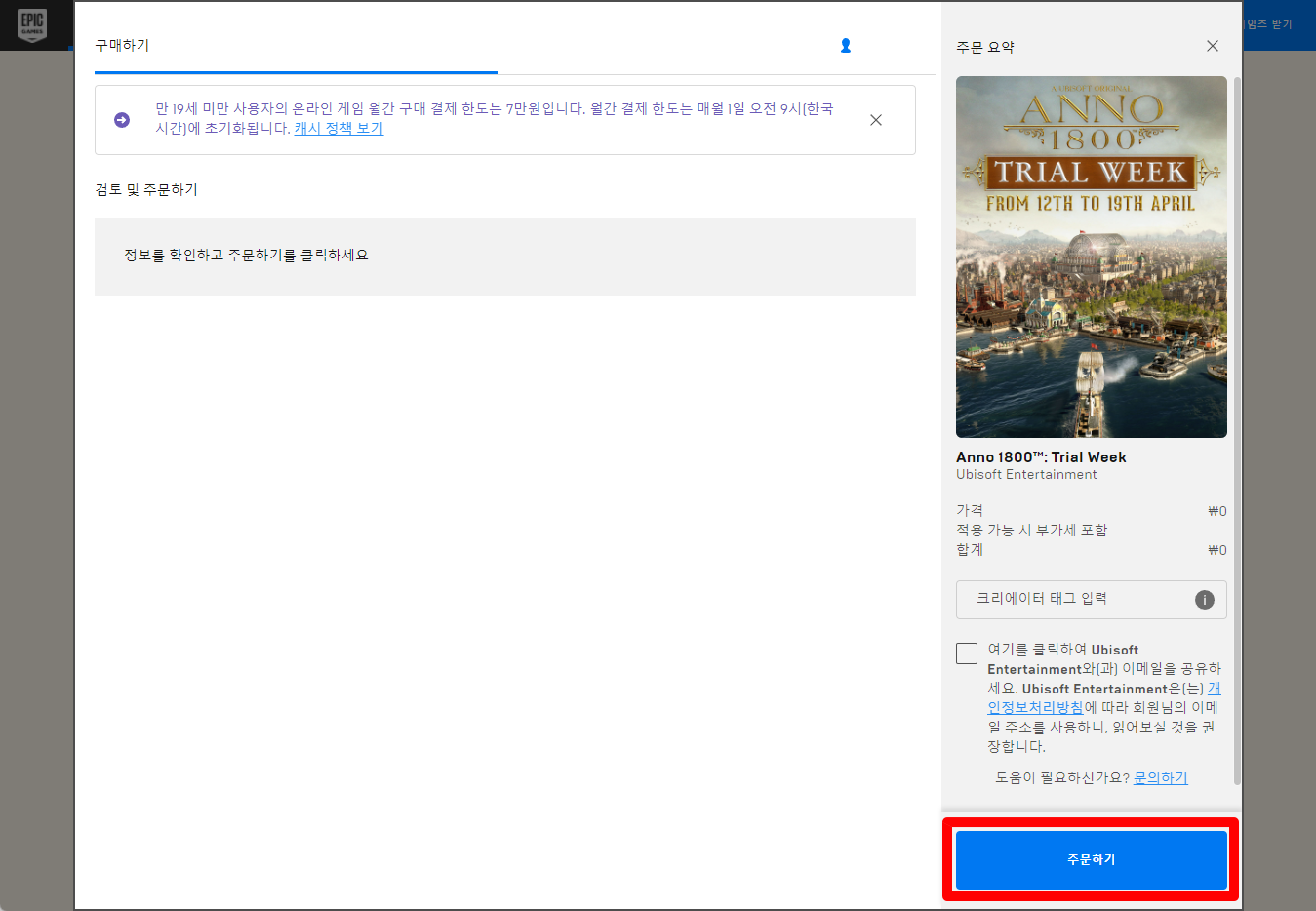[주문하기] 클릭 후 에픽런처에서 게임 설치해서 플래이하면 됩니다.