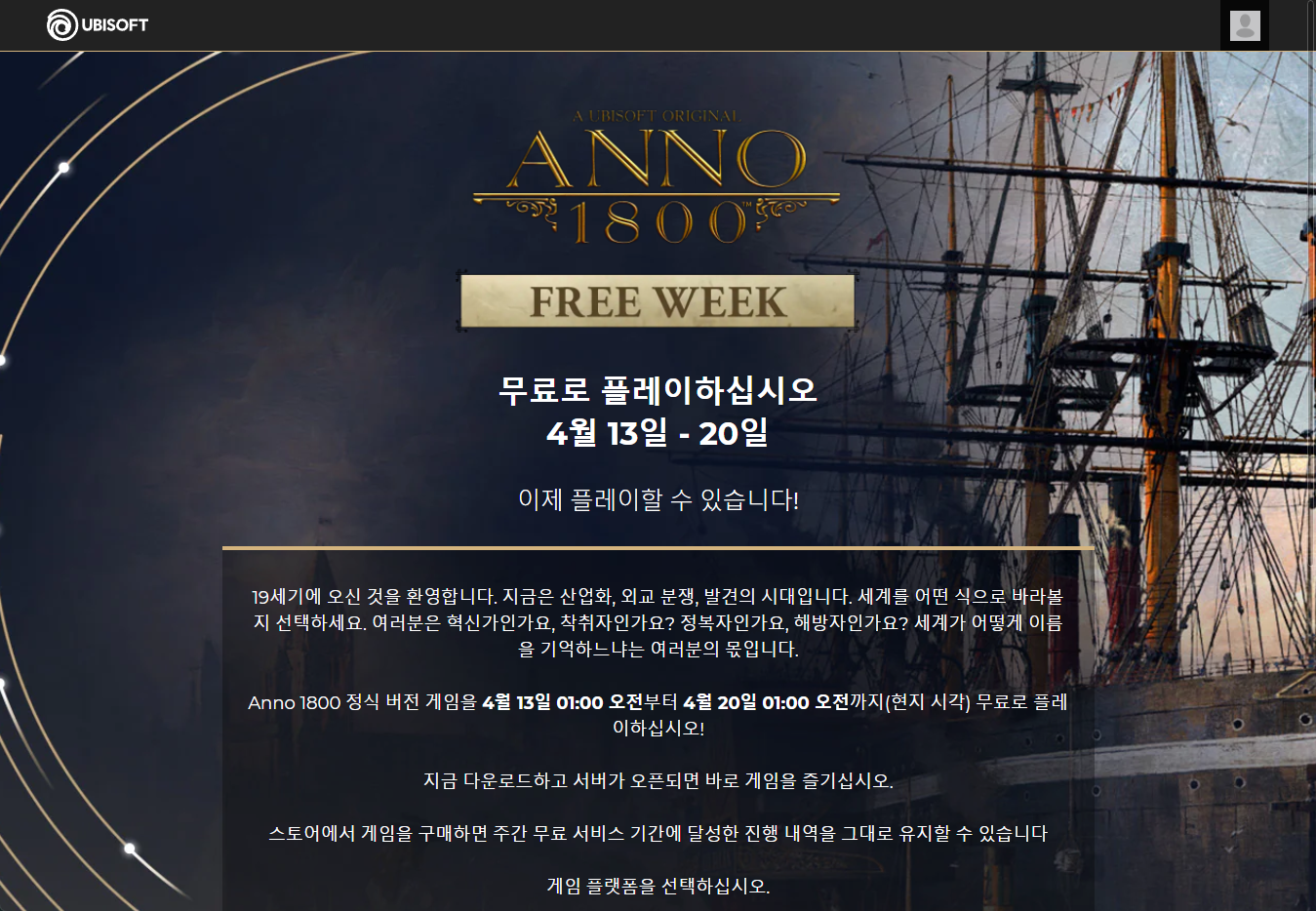 Anno 1800 아노 1800 금주 무료 플레이 Play for Free weekend on Ubisoft 유비소프트, Epic 에픽 - 2022.04