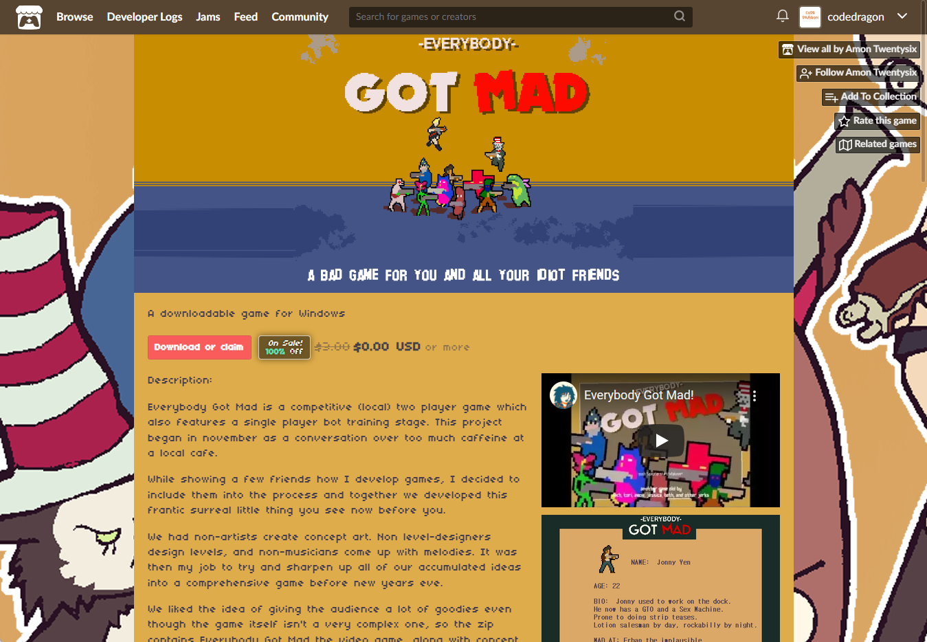 ₩4,302 -> ₩0(Free) Everybody Got Mad! 에브리바디 갓 매드 무료로 받기 영구소장 (재배포) - itch.io 잇치 닷 아이오 한시적 무료 소장하기
