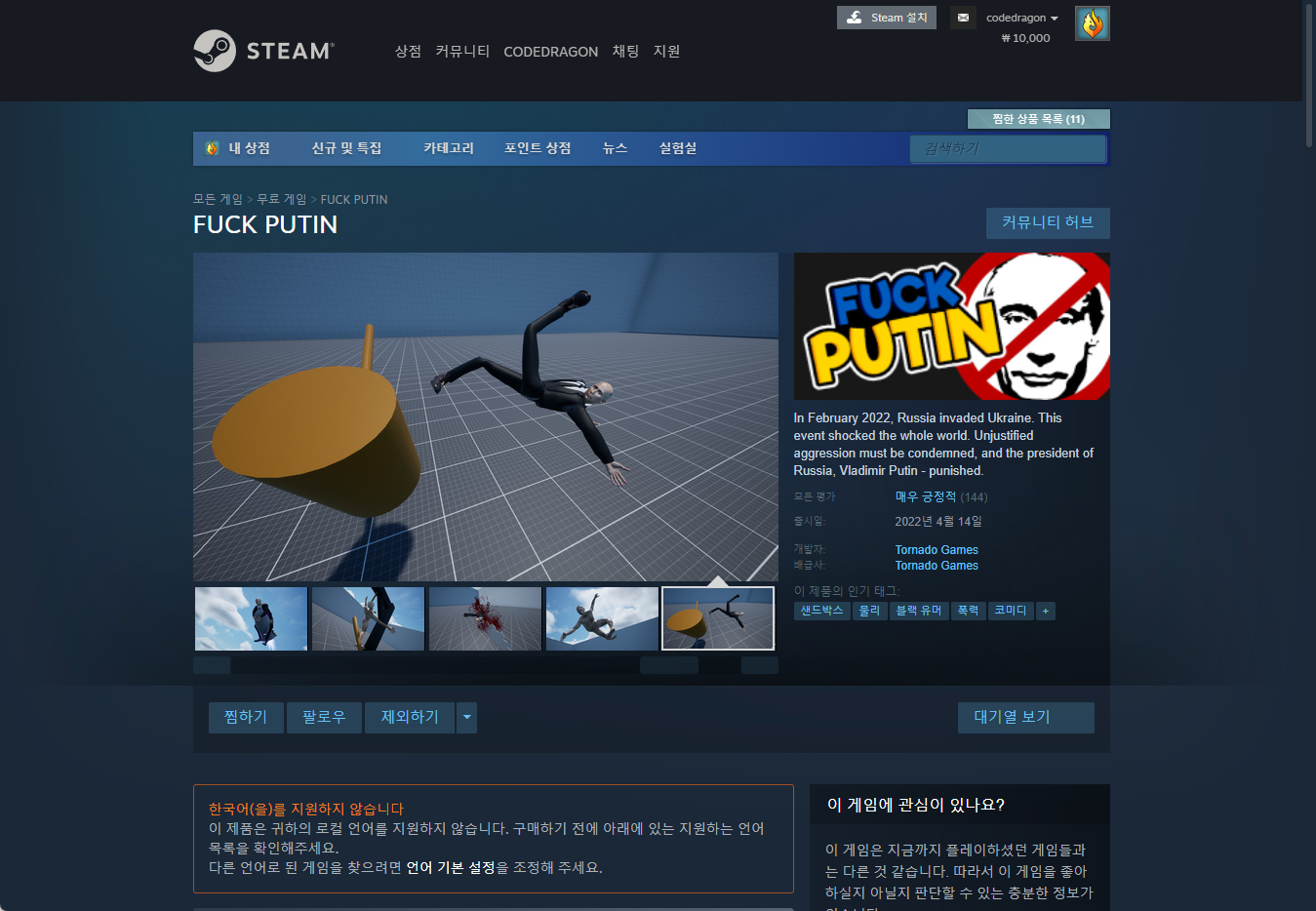 "FUCK PUTIN" 스팀 페이지 입니다.