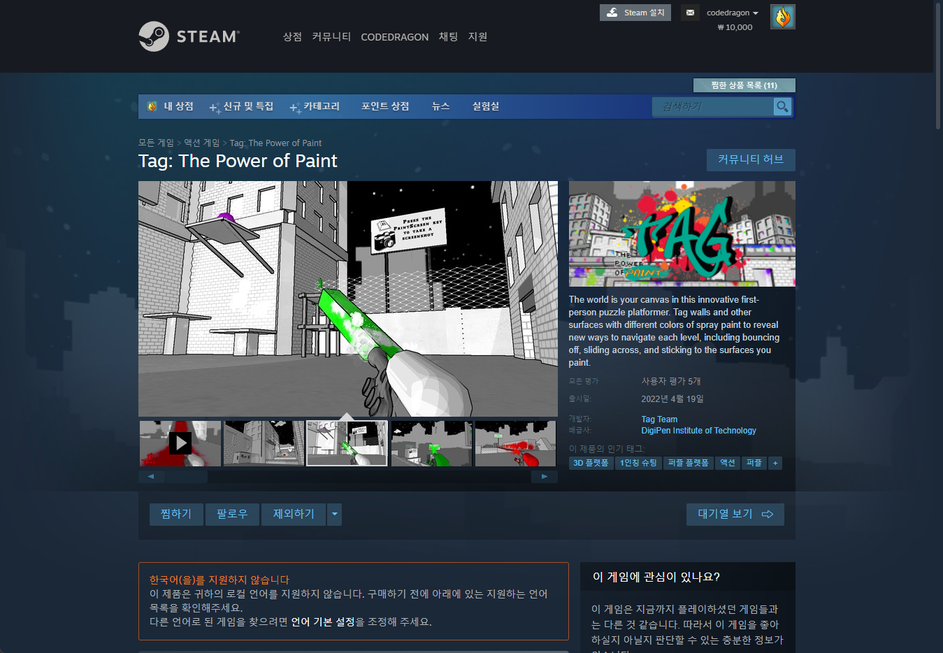 "Tag: The Power of Paint" 스팀 페이지 입니다.