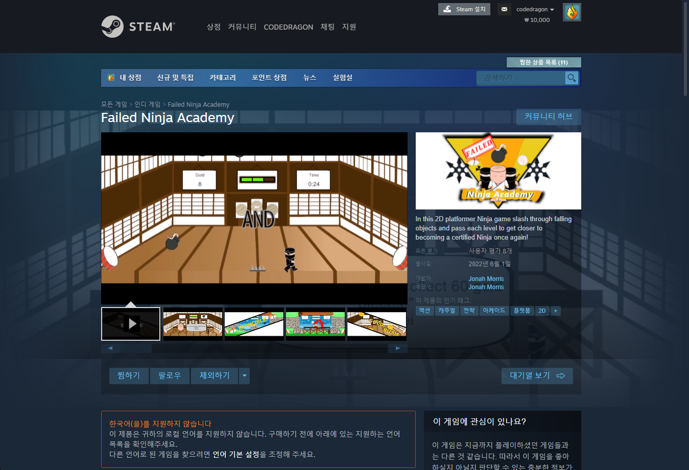 "Failed Ninja Academy" 스팀 페이지 입니다.