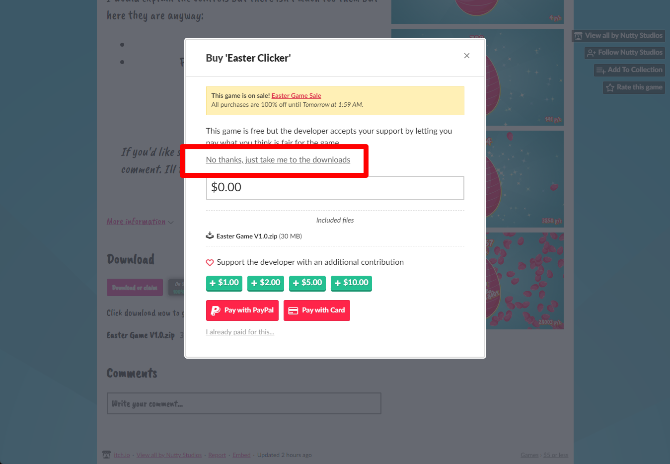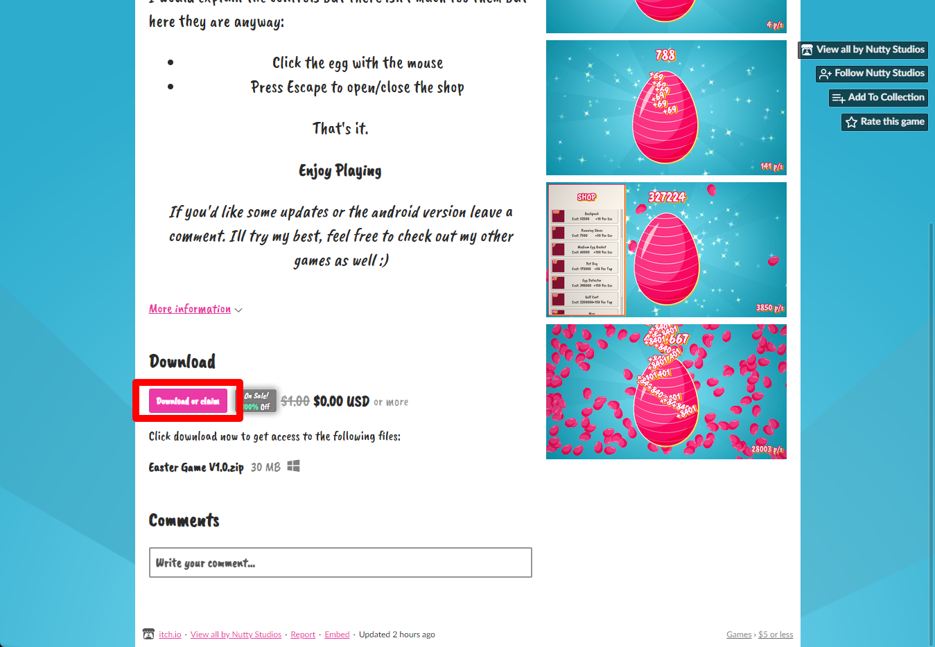 "Easter Clicker" 페이지를 내려서 [Download or claim]을 클릭합니다.