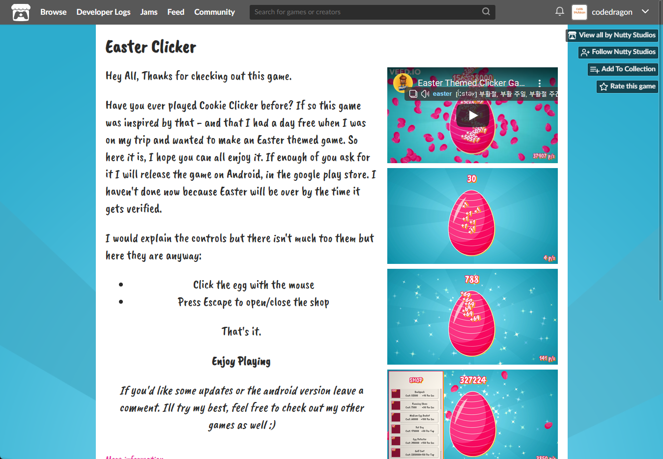 "Easter Clicker" 공식 페이지에 접속합니다.
