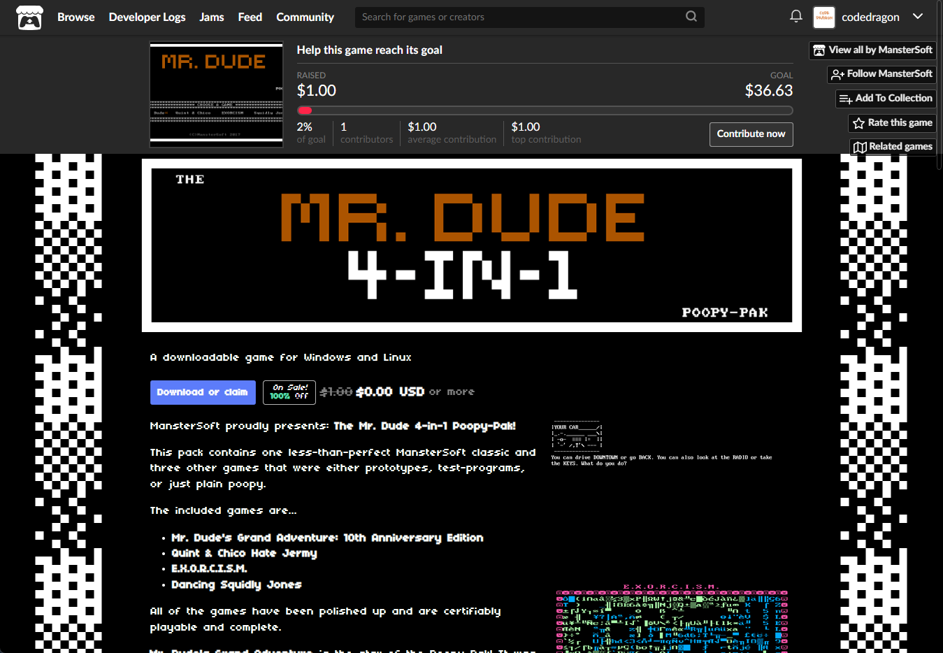 ₩1,264 -> ₩0(Free) The Mr. Dude 4-in-1 Poopy-Pak 미스터 듀드 4-in-1 푸피-팍 무료로 받기 영구소장 - itch.io 잇치 닷 아이오 한시적 무료 소장하기