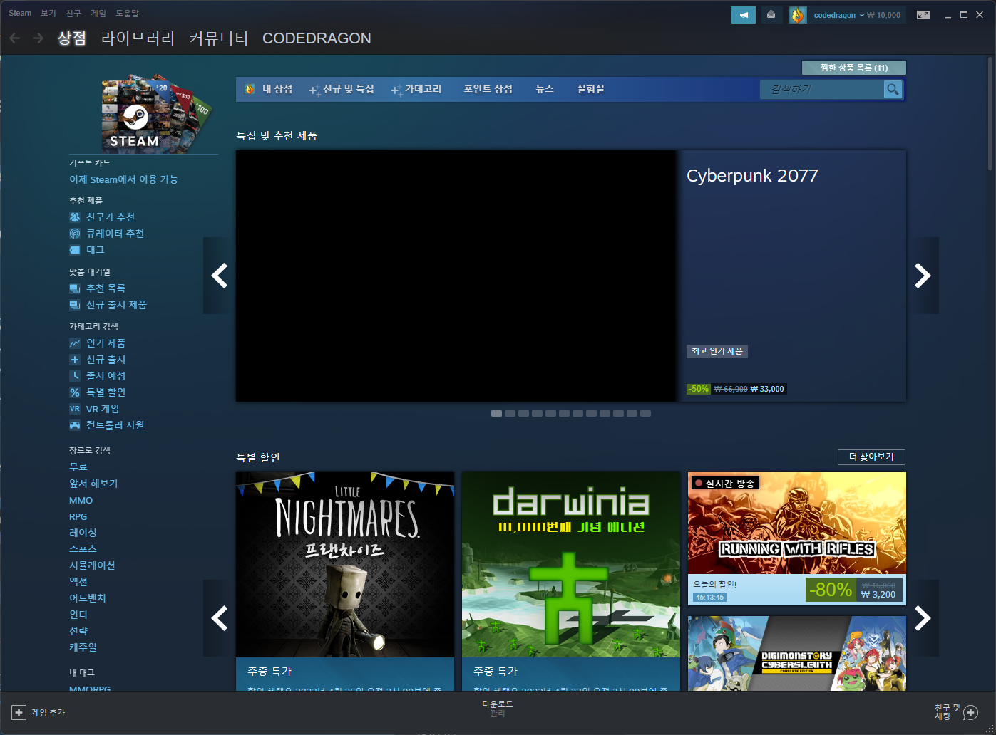 스팀 런처에서 상단에 있는 [라이브러리] 메뉴를 클릭합니다.