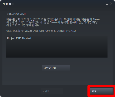 - "Project F4E" 스팀키 등록하기; 활성화하기