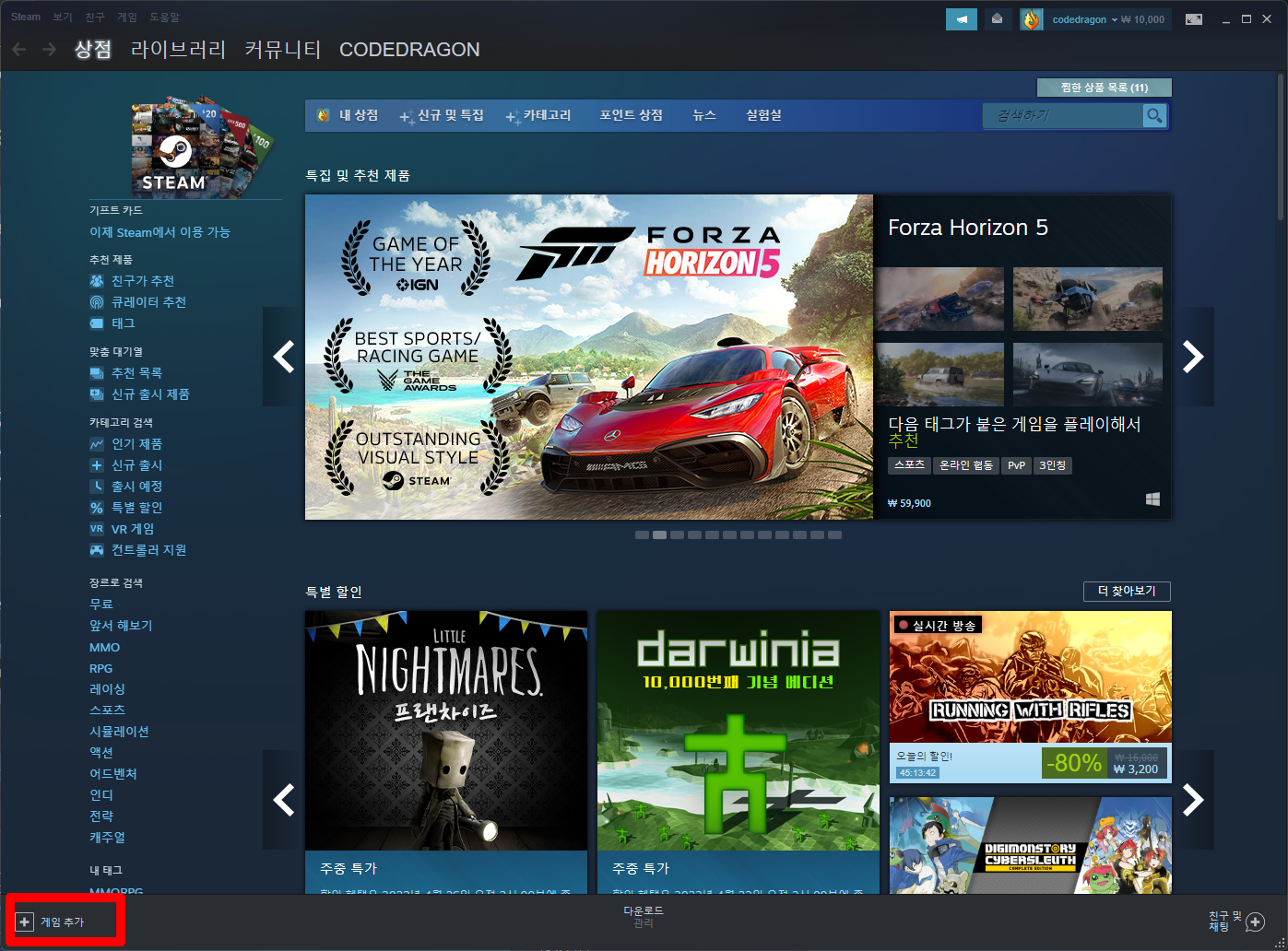 좌측하단의 [+ 게임추가] 클릭합니다.