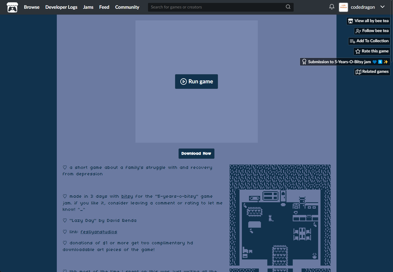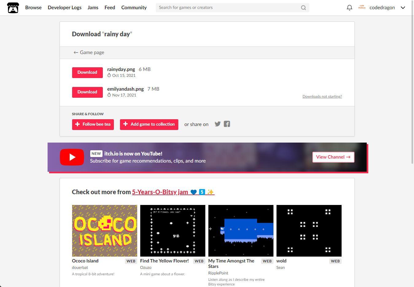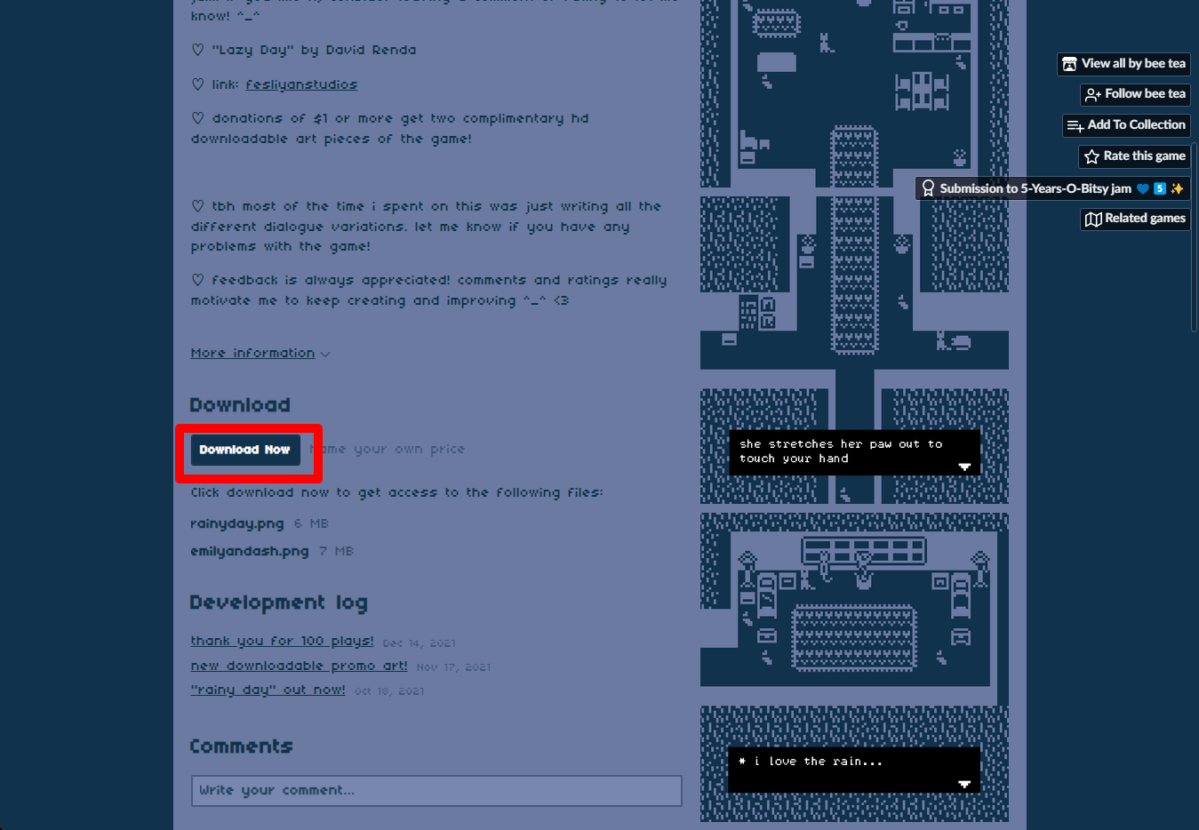 "rainy day" 해당 항목에 있는 [Download] 버튼을 클릭하면 게임의 설치파일을 다운받을 수 있습니다.