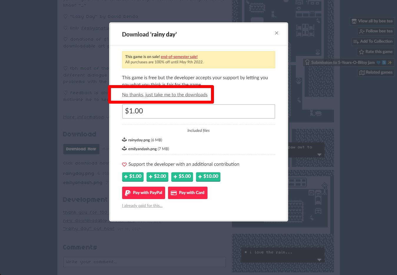 ₩1,263 -> ₩0(Free) rainy day 레이니 데이 무료로 받기 영구소장 - itch.io 잇치 닷 아이오 한시적 무료 소장하기