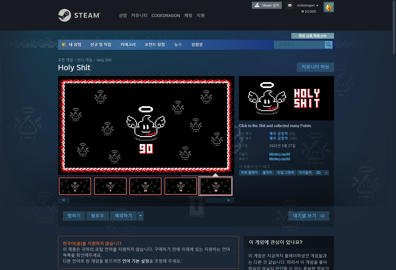"Holy Shit" 스팀 페이지 입니다.