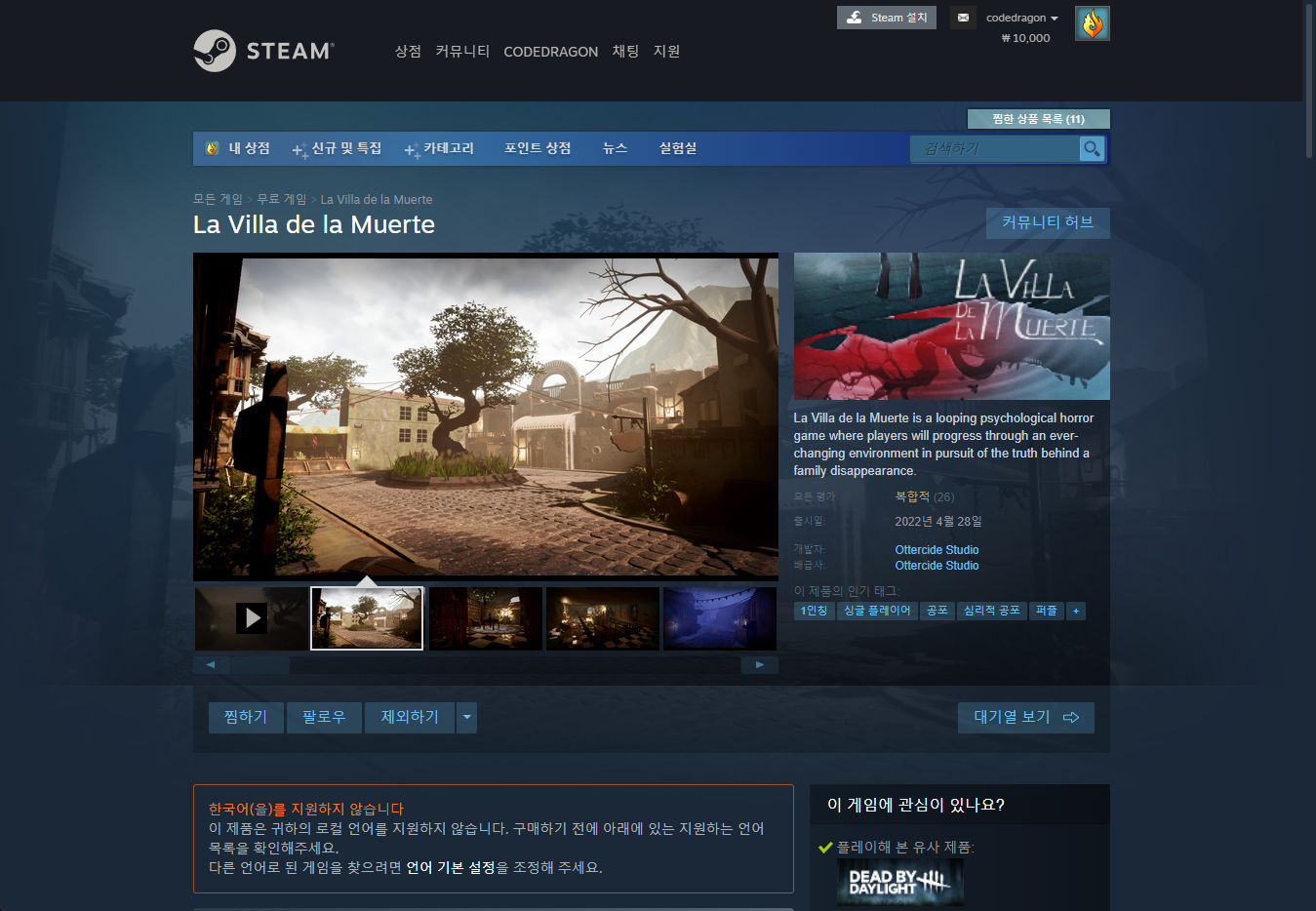 "La Villa de la Muerte" 스팀 페이지 입니다.