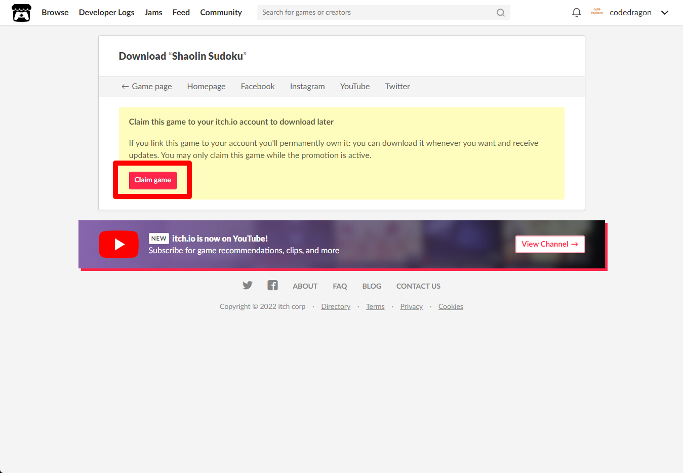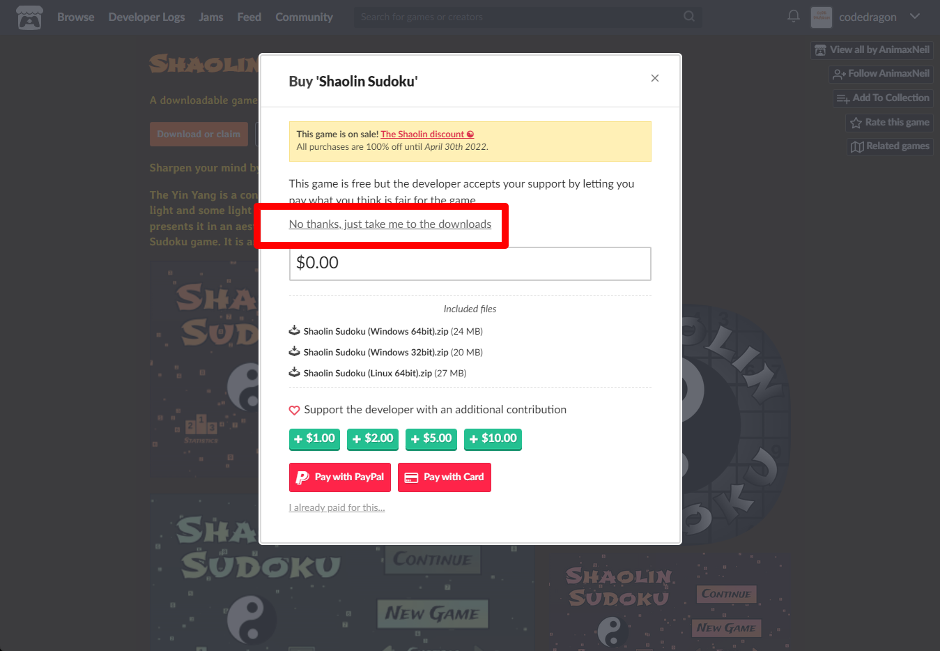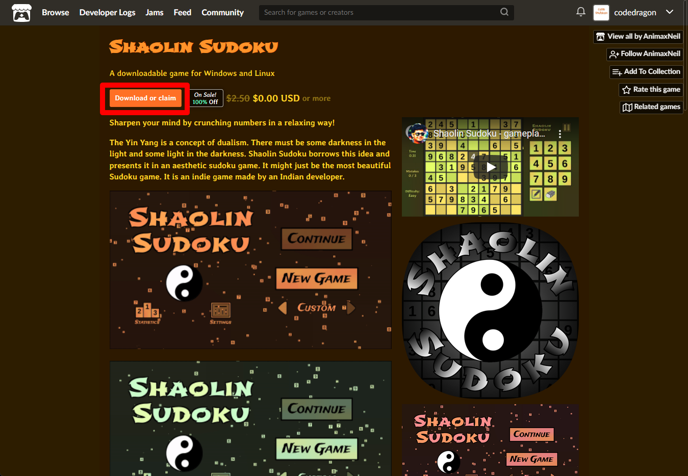 "Shaolin Sudoku" 페이지에 있는 [Download or claim]을 클릭합니다.